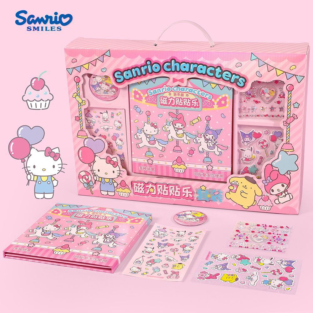 소녀와 어린이를위한 Sanrio 자석 스티커 조용한 책 보석 스티커 선물 상자 세트 Melody Coolomi 스티커스토어 가기