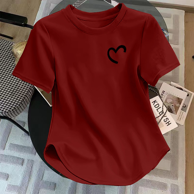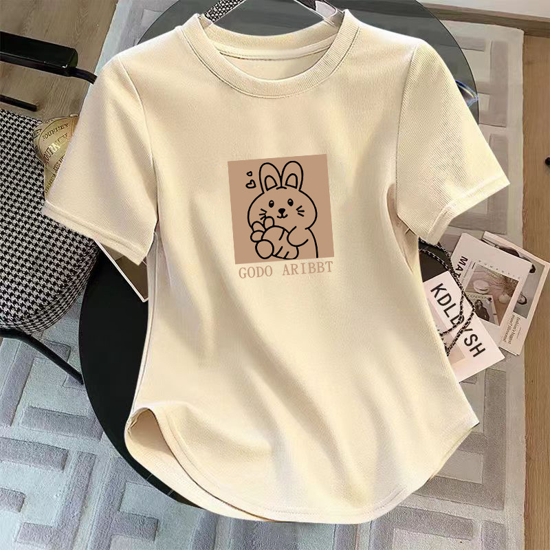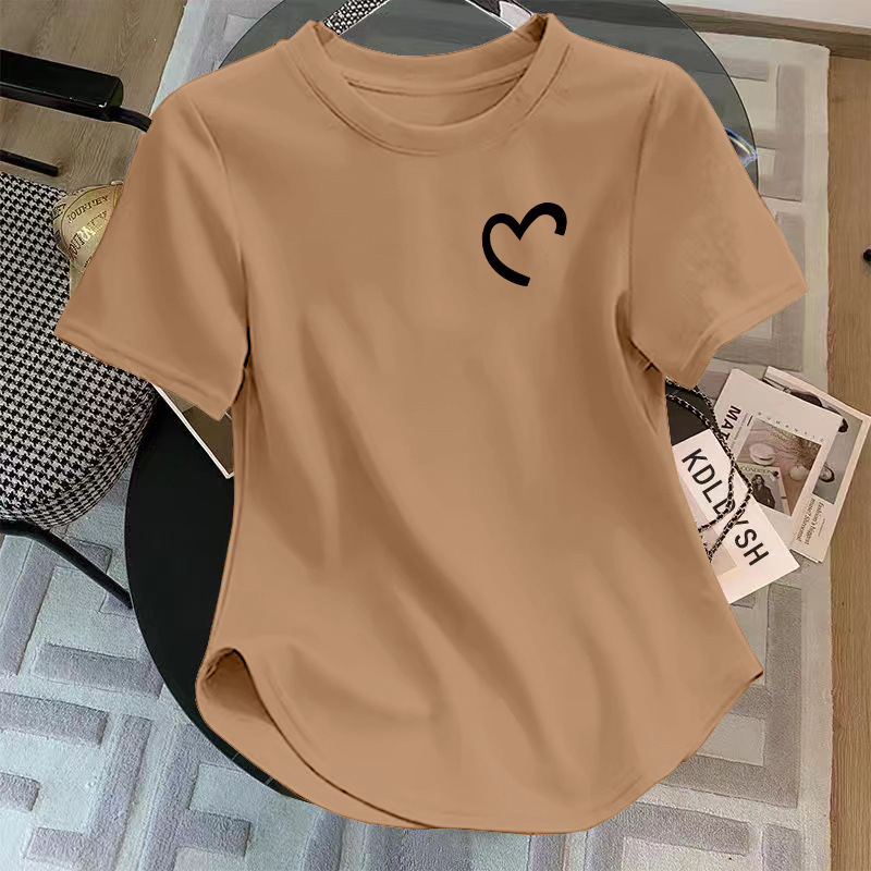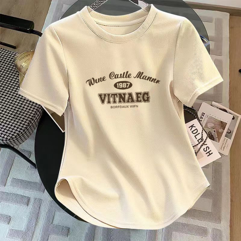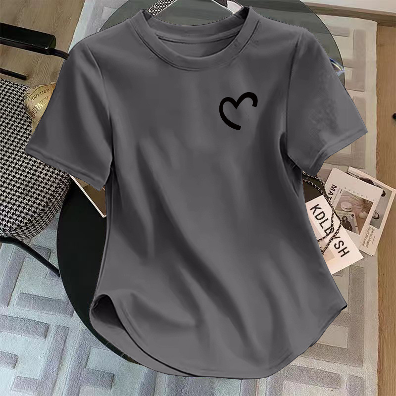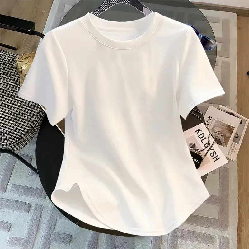 면 반팔 티셔츠 여자 여름 새 라운드 넥 한국식 곡선 불규칙한 티셔츠 느슨한 올매치 디자인 탑스토어 가기