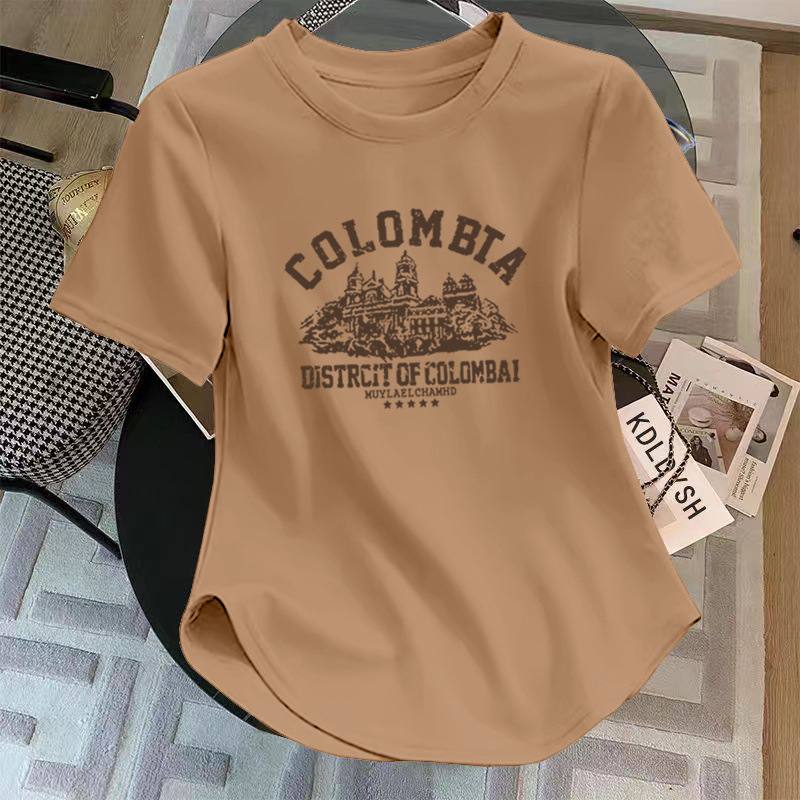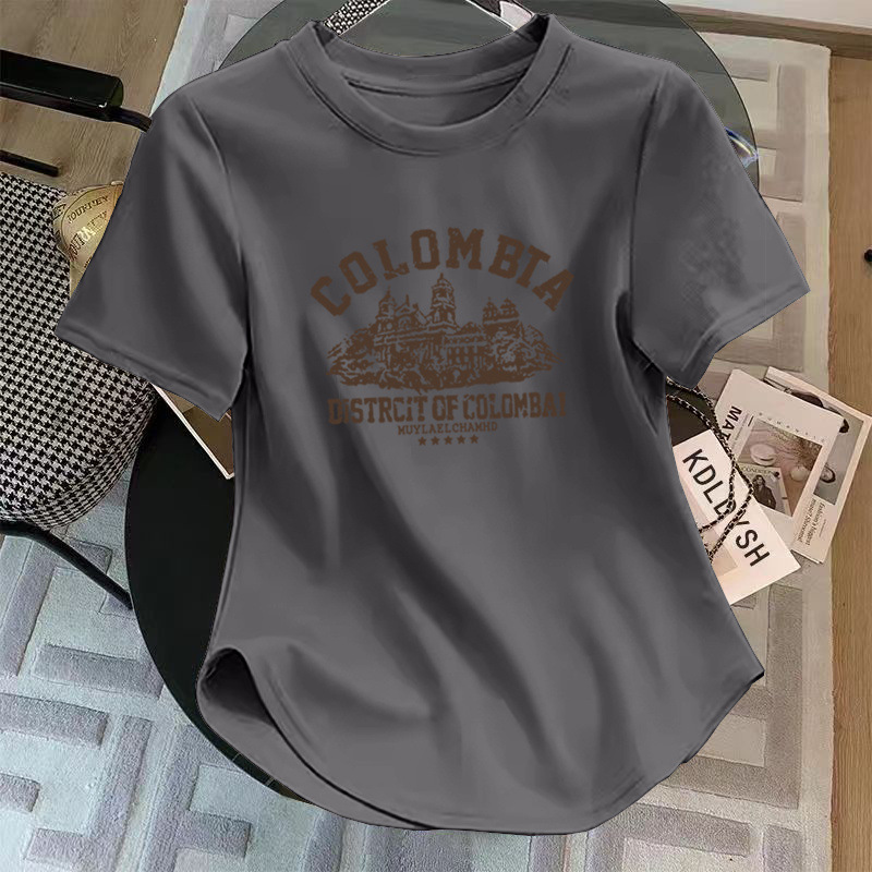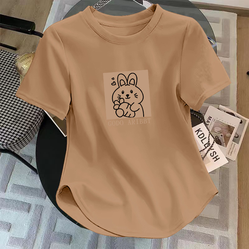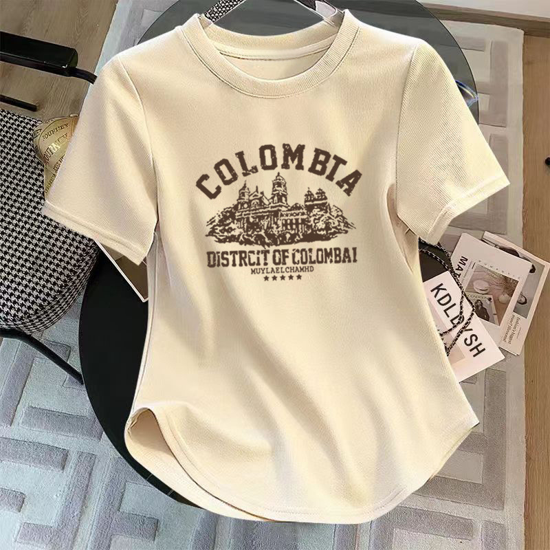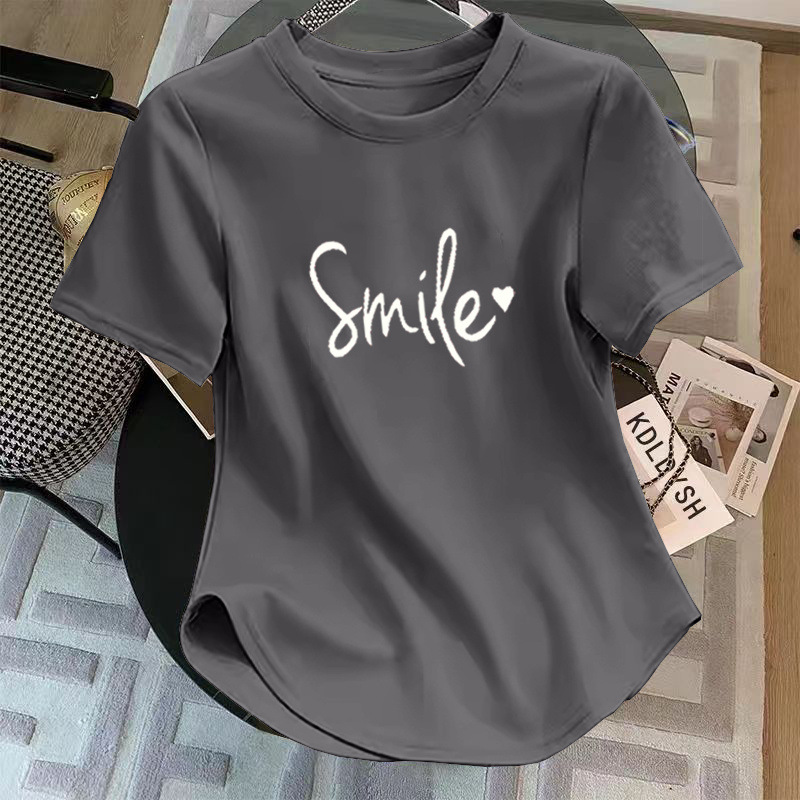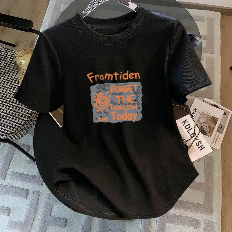 면 반팔 티셔츠 여자 여름 새 라운드 넥 한국식 곡선 불규칙한 티셔츠 느슨한 올매치 디자인 탑스토어 가기