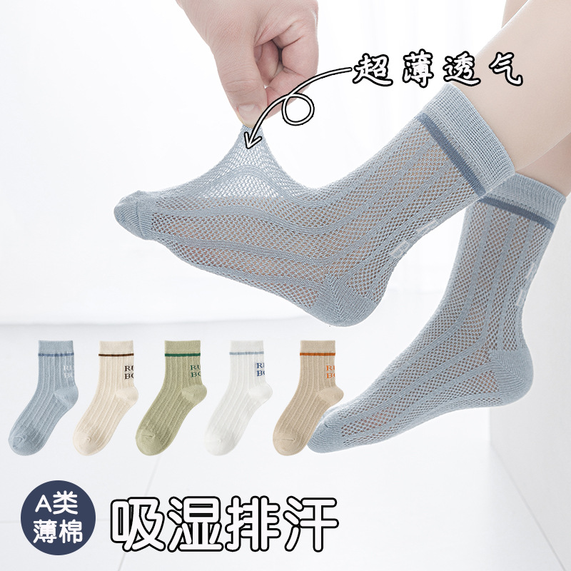 [같은 색 안티-분실] 어린이 양말 여름 얇은 소년 봄과 여름 얇은 면 통기성 메쉬 양말 면 튜브 양말
