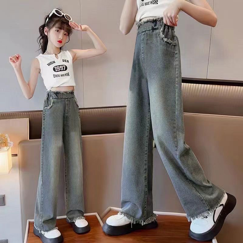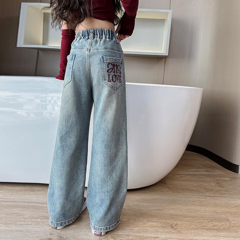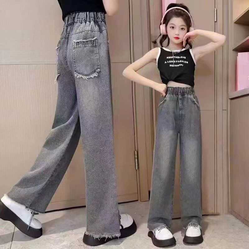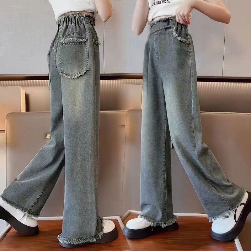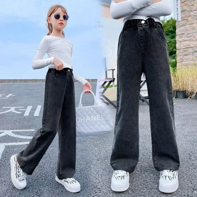 여아용 와이드 팬츠, 봄 아동용 아우터 청바지, 봄, 가을, 여름 스타일, 여아용 루즈 스트레이트 초경량 팬츠스토어 가기