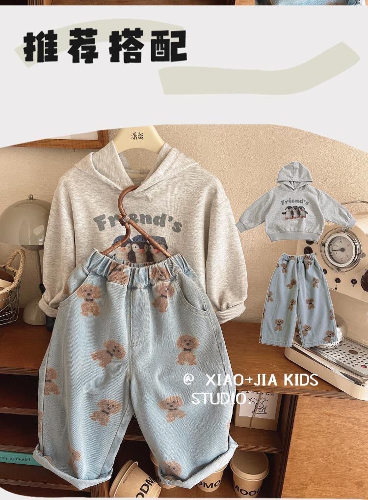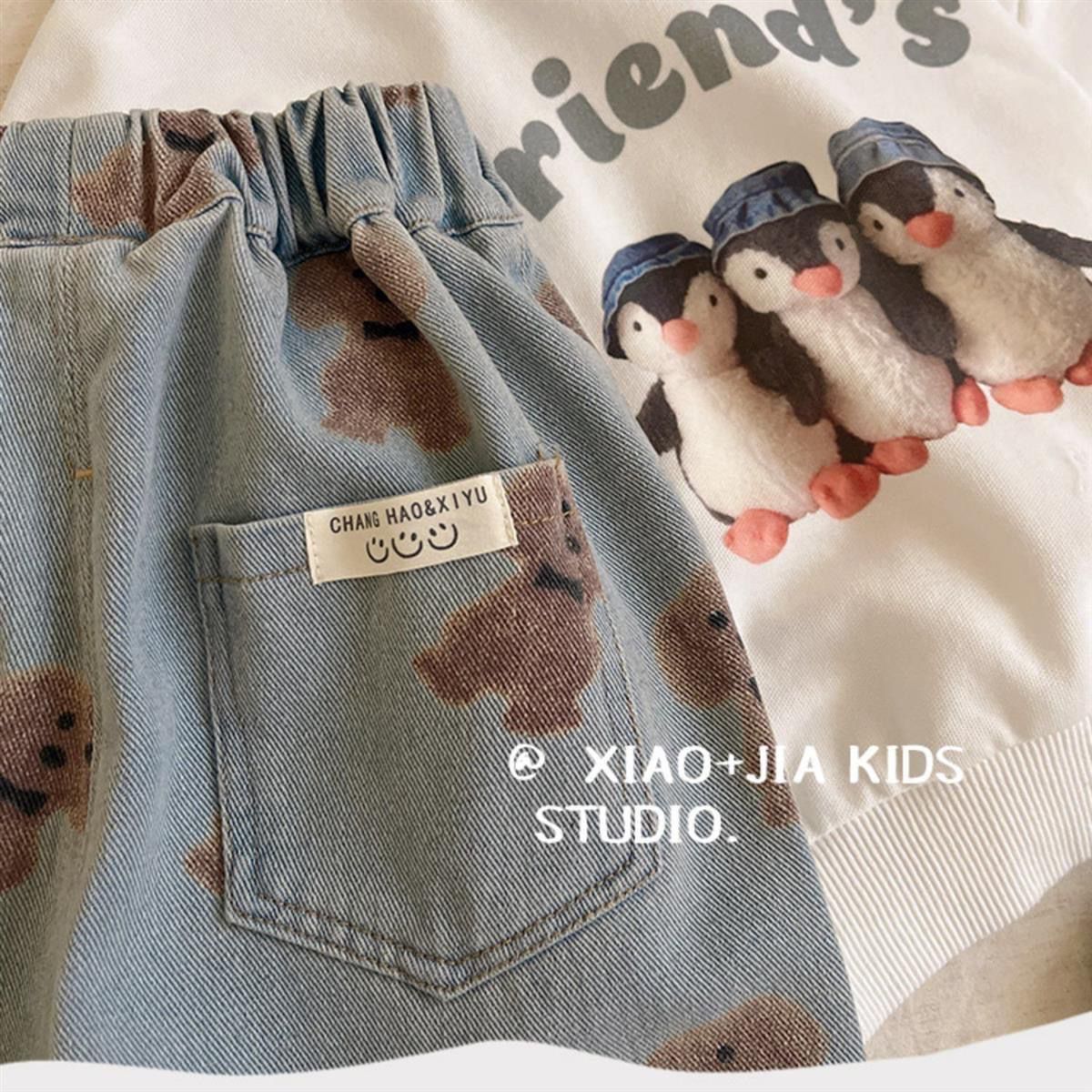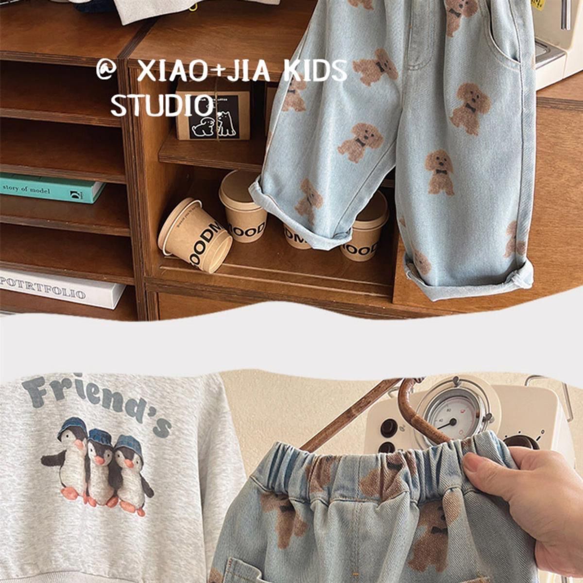 슈퍼 한국 스타일 ~ 어린이 봄 고품질 프린트 소프트 청바지 밝은 색상 소년 소녀 봄, 가을 캐주얼 바지 다용도 바지스토어 가기