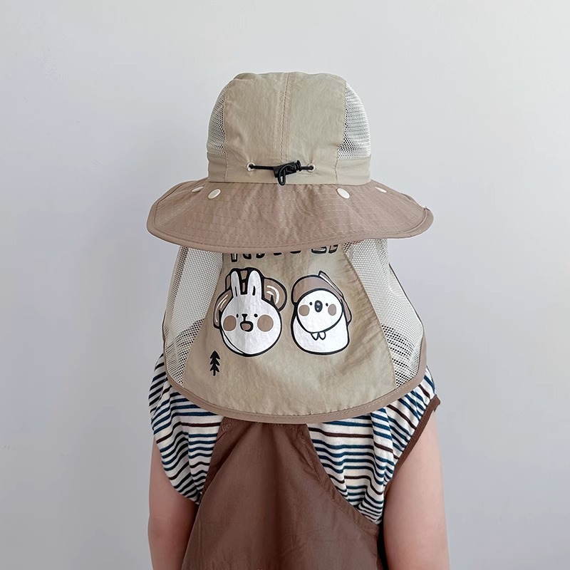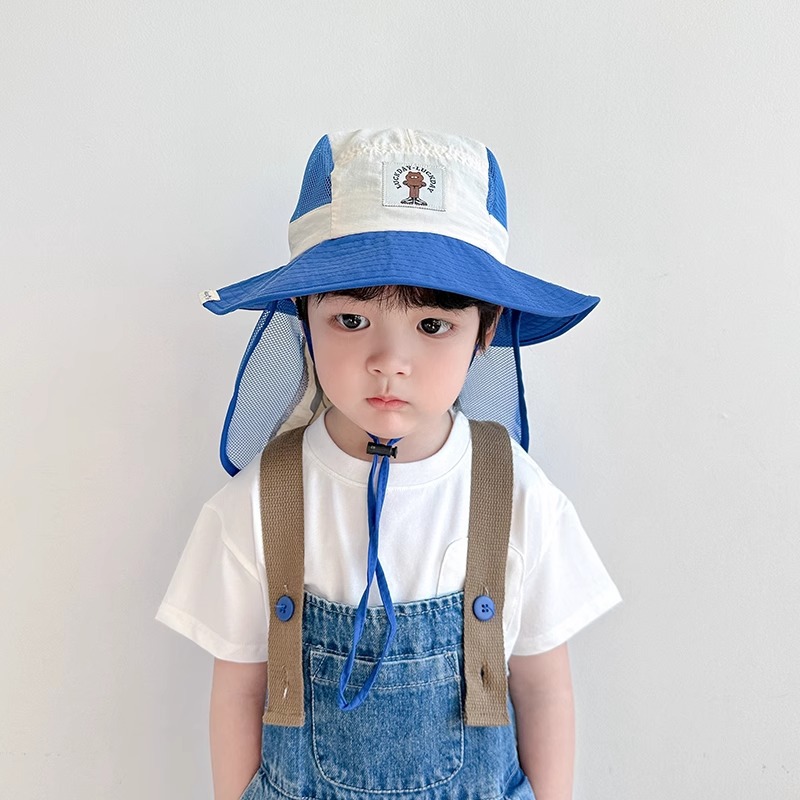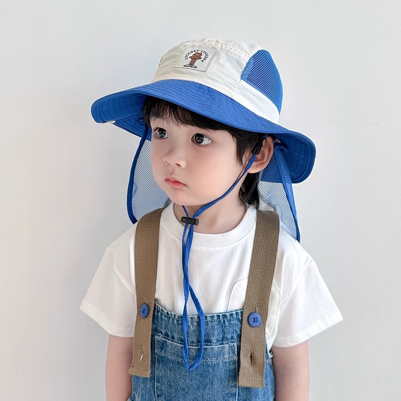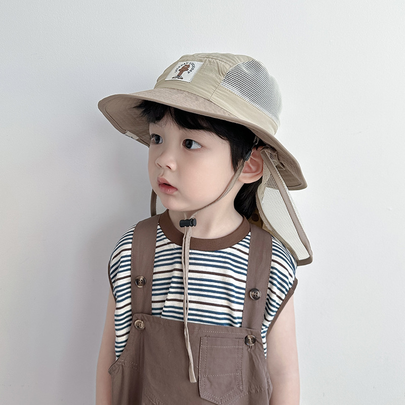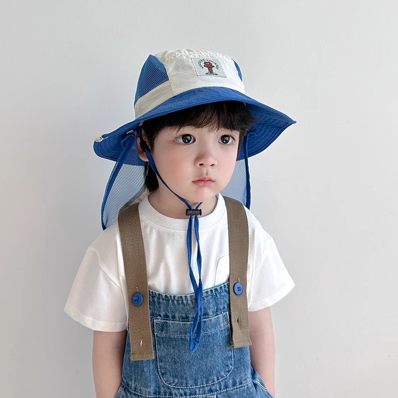 어린이 모자 봄과 가을 얇은 소년 아기 태양 보호 모자 태양 모자 소녀 목도리 어부 모자 중대형 어린이 여름
