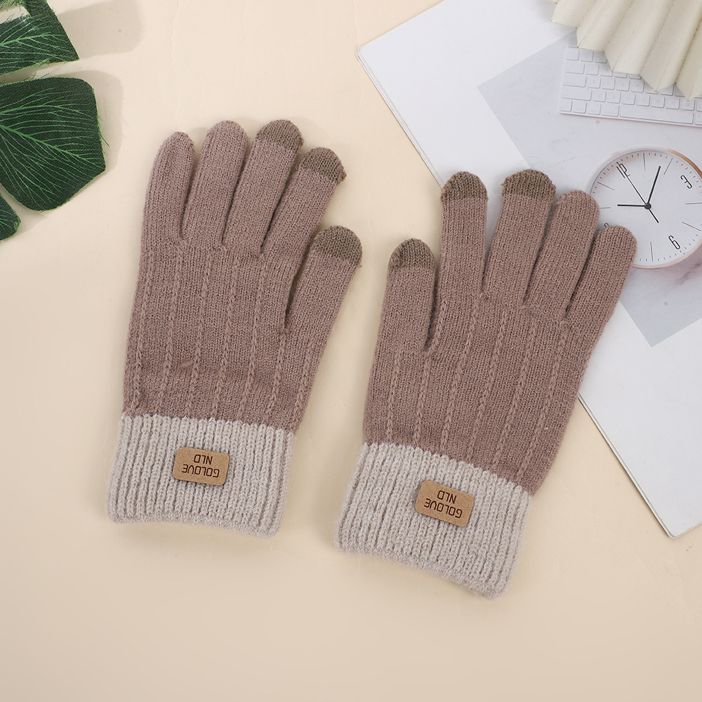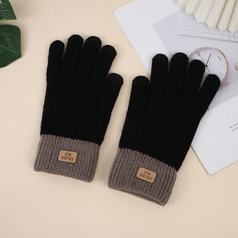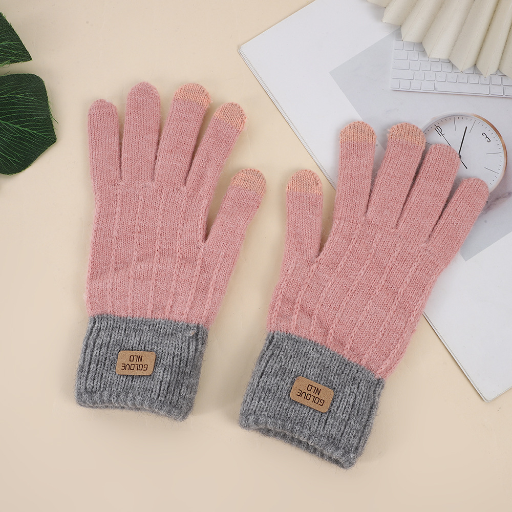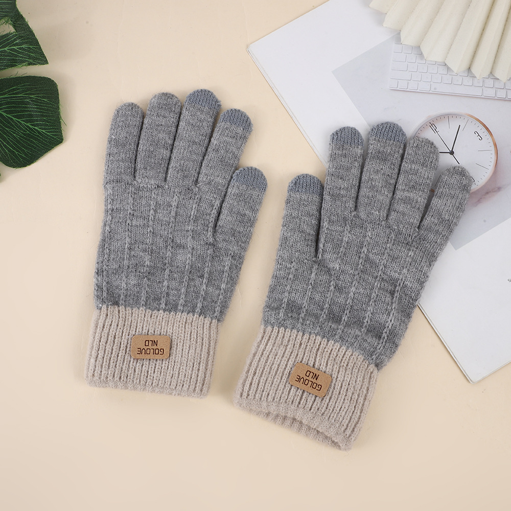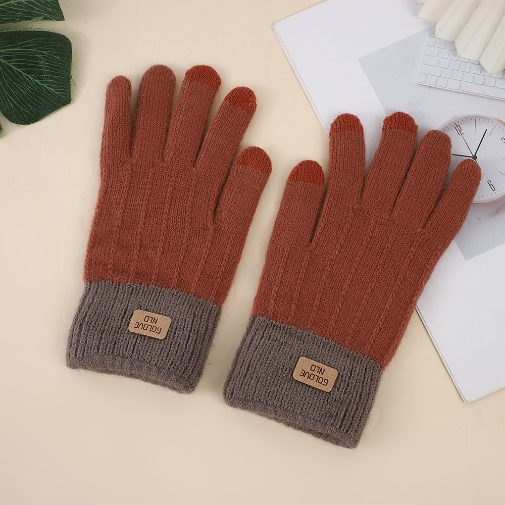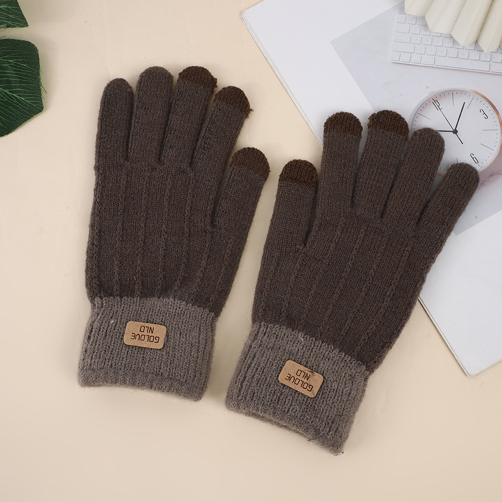 한국식 겨울 따뜻한 모직 방풍 성인 벨벳 두꺼운 다섯 손가락 터치 스크린 니트 방한 사이클링 야외 장갑
