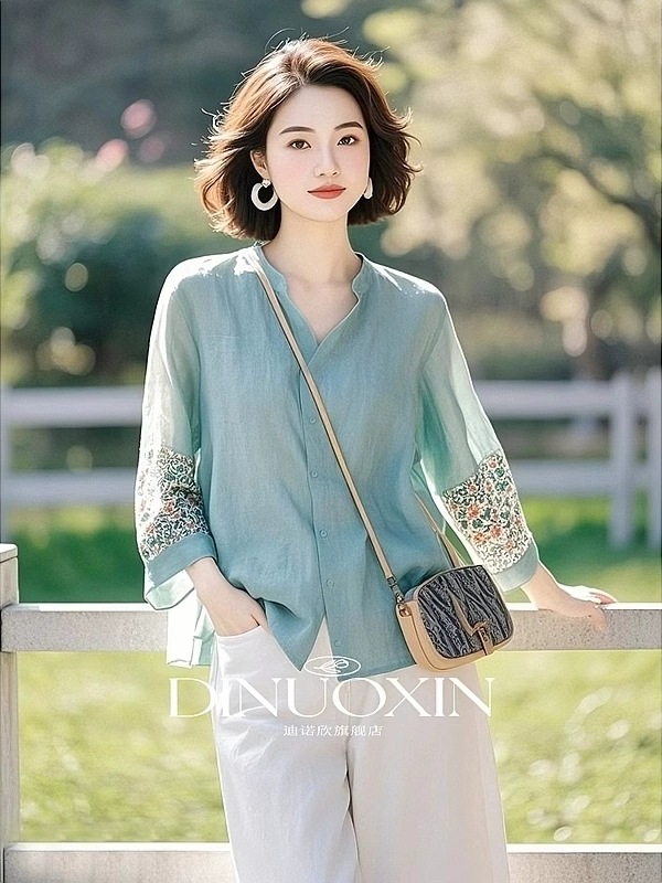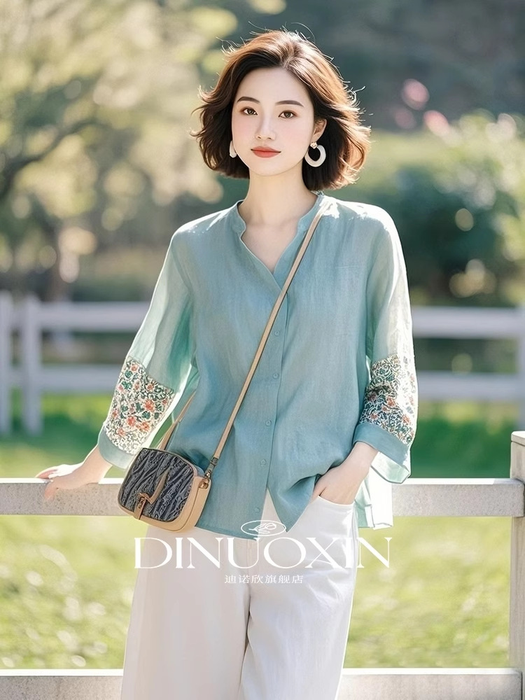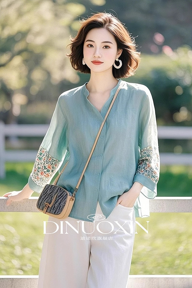 2025 봄 새로운 독특한 슈퍼 잘 생긴 통근 착용 블루 긴 소매 셔츠 코트 우아한 여성 탑