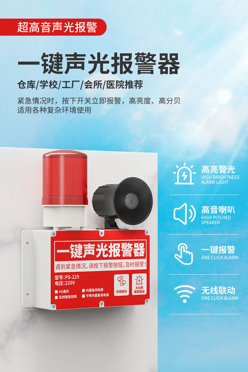 일단 키로 소리와 빛 경보 장치 연결 화재 경보 벨 산업용 화재 무선 비상 버튼 경보 경적