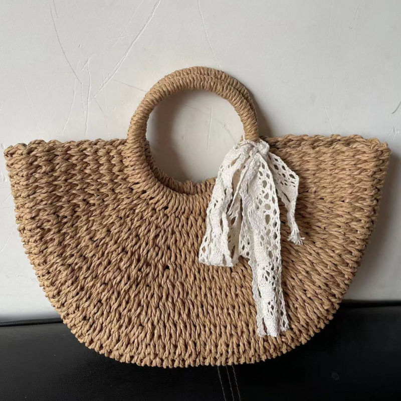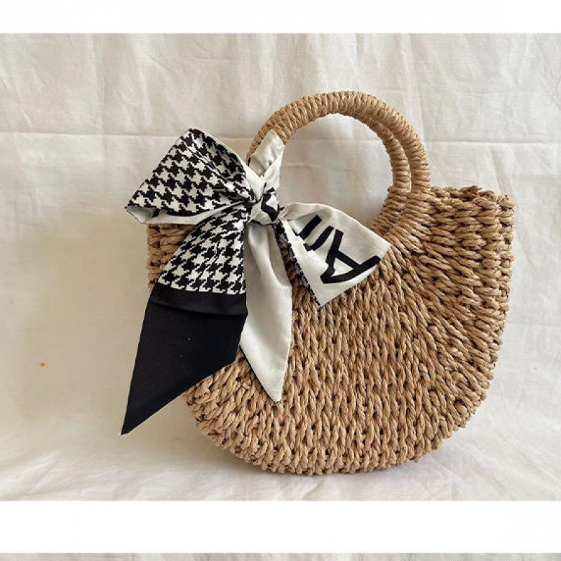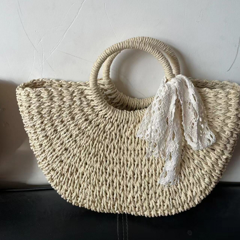 대용량 수동 짠 가방 2025 새로운 패션 짠 핸드백 겨울 패션 밀짚 캐주얼 토트 백스토어 가기
