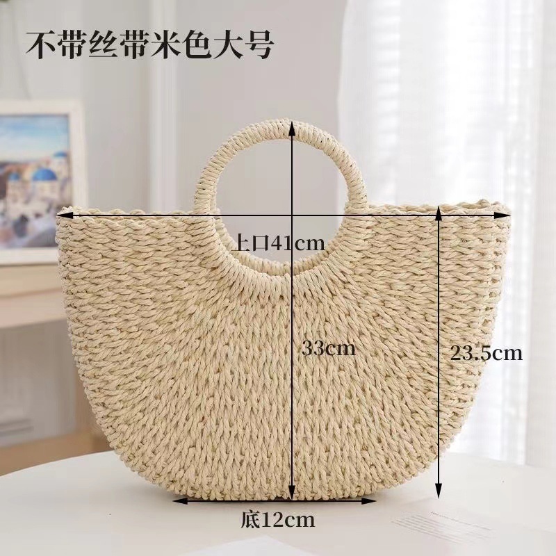 대용량 수동 짠 가방 2025 새로운 패션 짠 핸드백 겨울 패션 밀짚 캐주얼 토트 백