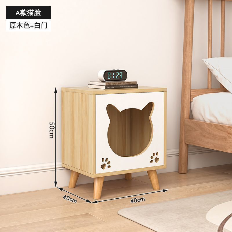 단단한 나무 침대 옆 테이블 작은 다기능 가정용 침실 보관 캐비닛 키티 간단한 고양이 고양이 집 침대 옆 캐비닛
