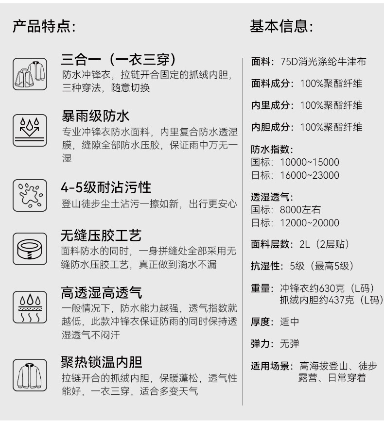 도로 확장 야외 등산 의류 분리 가능한 3 대 1 방풍 재킷 남성 대외 무역 공급망 공장 국경 도매스토어 가기
