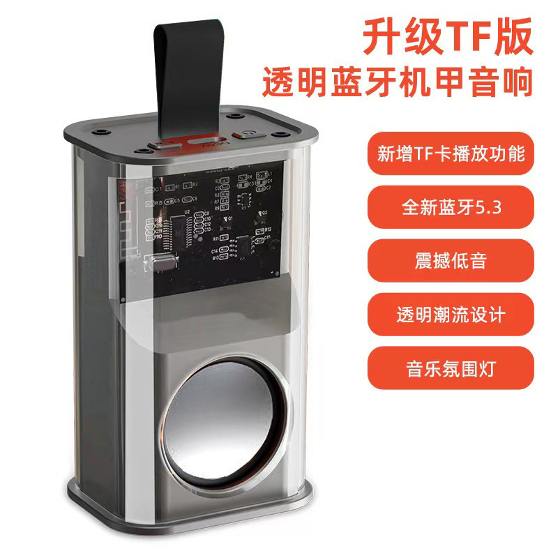 투명한 블루투스 스피커 서브 우퍼 야외 휴대용 홈 데스크탑 미니 메카 작은 강철 총 오디오 분위기 빛