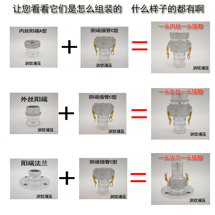 알루미늄 합금 퀵 커넥터 1인치 2인치 3inch 4inch A형 E형 F형 탱커 트럭 수도관 스테인레스 스틸 양쪽 커넥터
