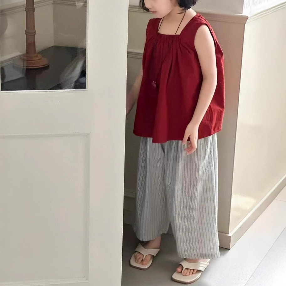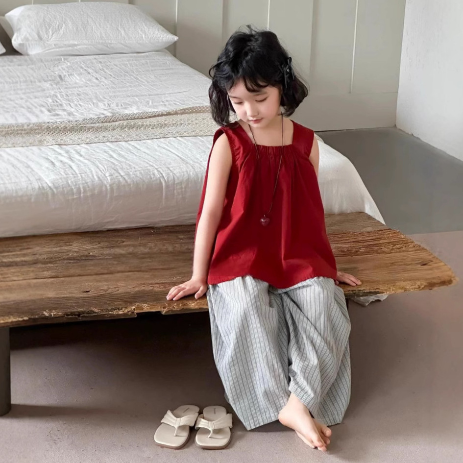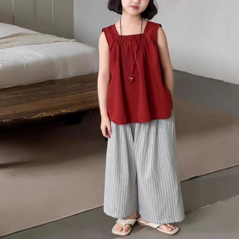 소녀의 여름 민소매 조끼 넓은 다리 바지 세트 2025 새로운 스타일 서양식 얇은 슬링 탑 캐주얼 여름 착용스토어 가기