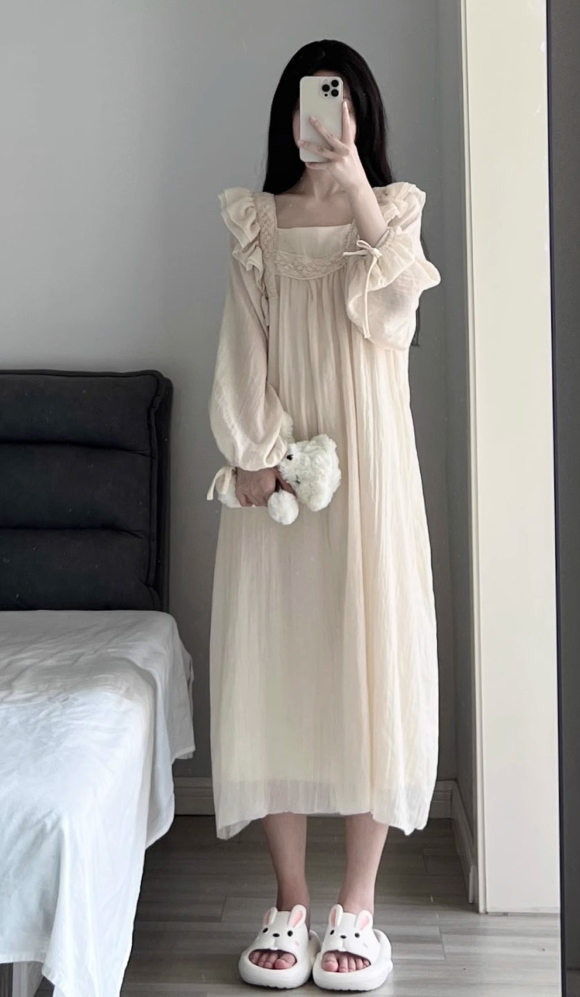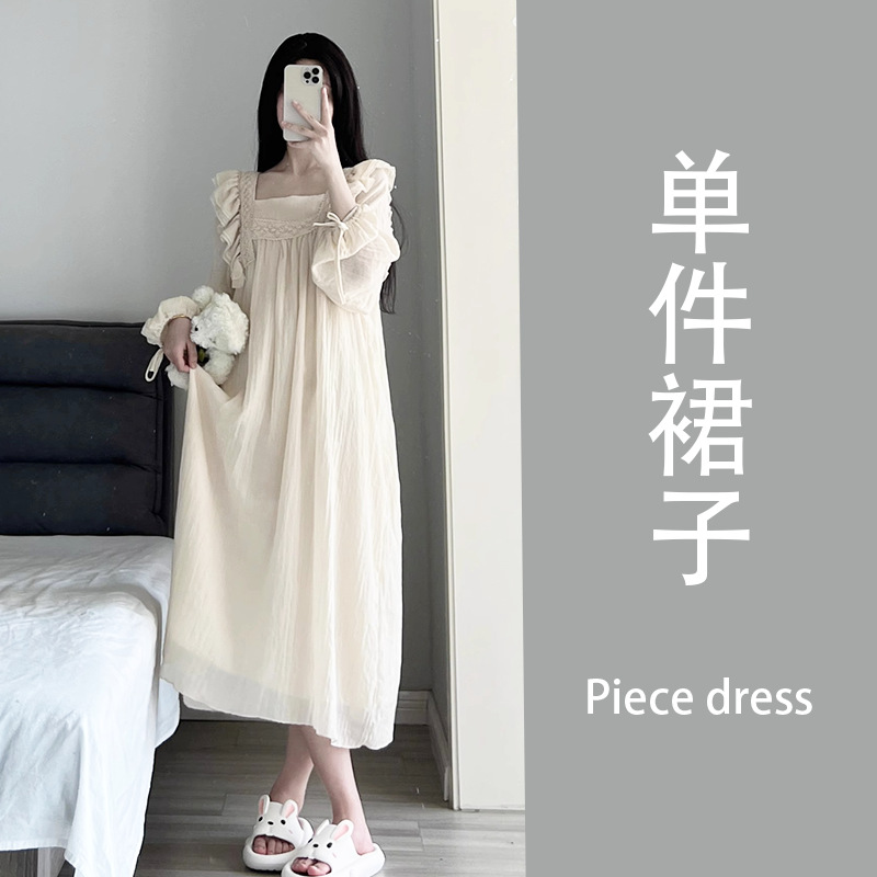순수한 욕망 파자마 여성의 여름 2025 새로운 하이 엔드 소녀 스퀘어 칼라 나이트 드레스 슬링 긴팔 캐주얼 원피스스토어 가기