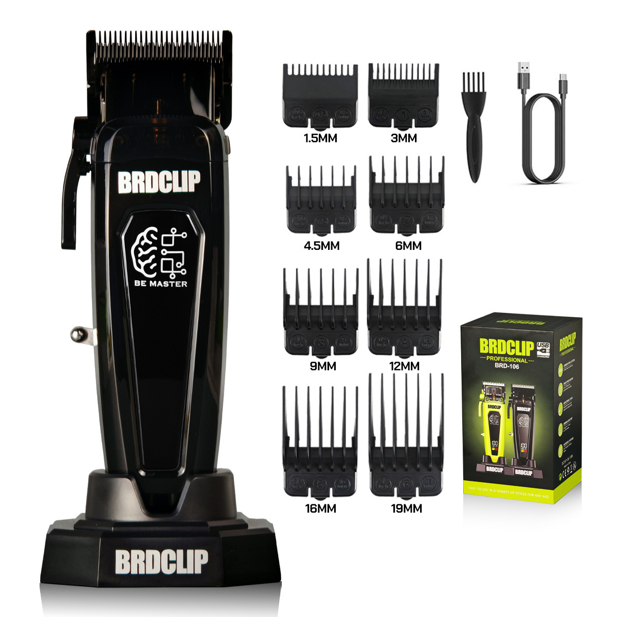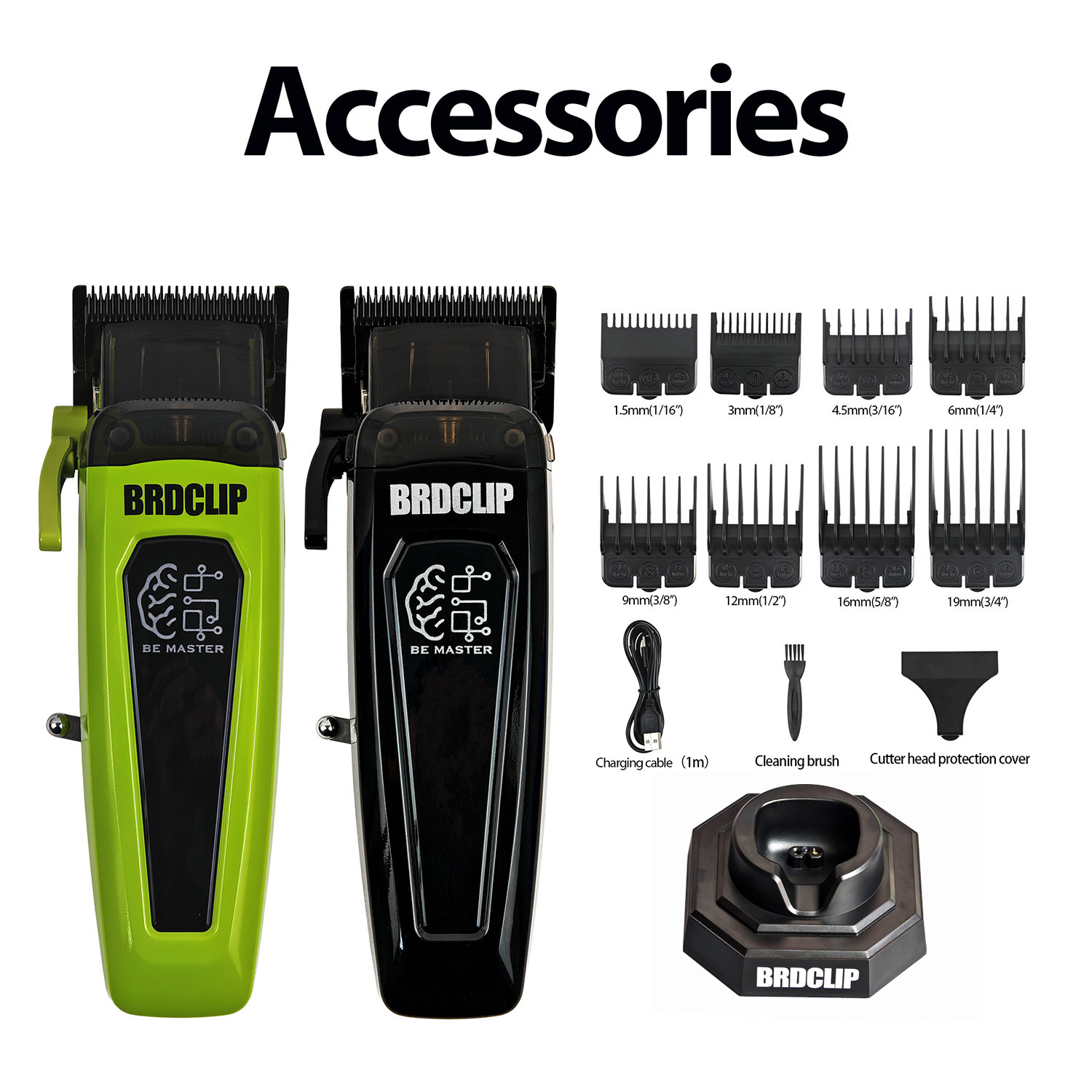 ● 配件:8卡扣限位梳(1.5/3/4.5/6/10/13/16/19mm)、清洁刷、USB充电线和充电底座。