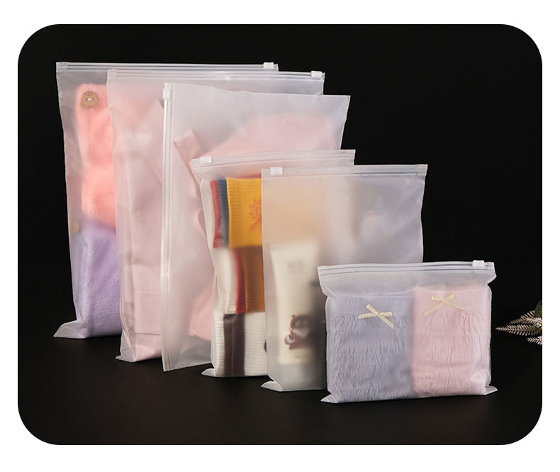 맞춤형 eva 두꺼운 젖빛 지퍼 가방 의류 투명 pe 지퍼 잠금 가방 속옷 양말 재고 있음 플라스틱 보관 가방스토어 가기