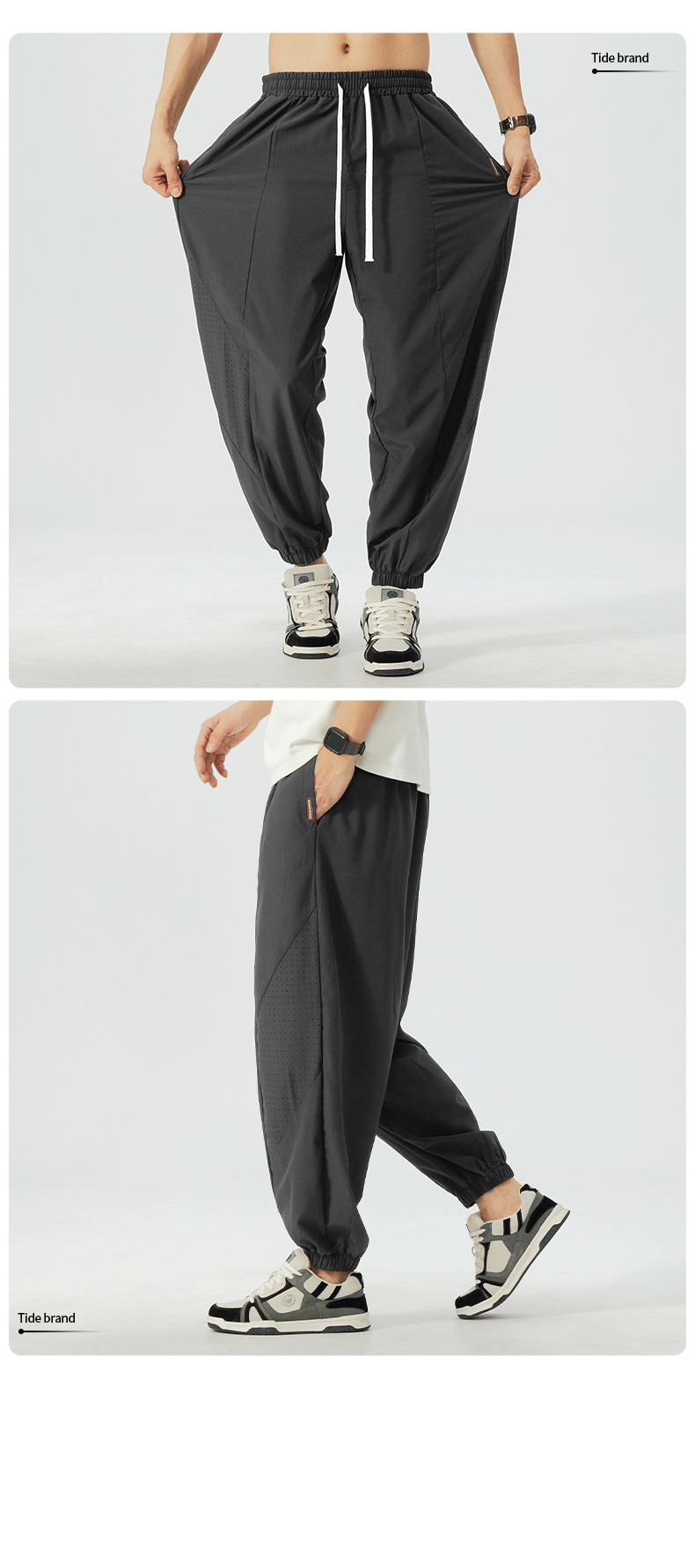 57 플러스 사이즈 아이스 메쉬 캐주얼 바지 남성 여름 얇은 레깅스 바지 유럽과 미국의 국경 간 통기성 속건 스포츠 바지