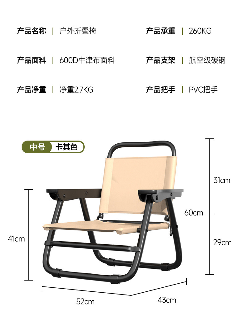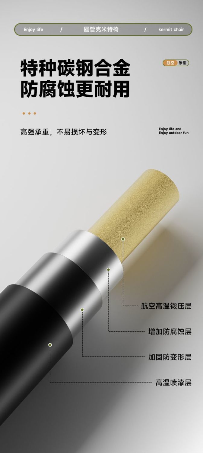 • 탄소강 합금 [업그레이드된 사각 튜브] 대형 카키 + 벨벳 코튼 패드