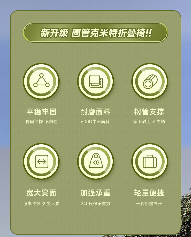• 150kg 내하중 [두꺼운 원형 튜브] 대형 카키
