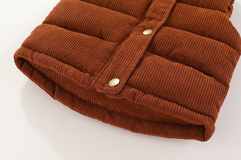 어린이 면화 조끼 가을, 겨울 새로운 스타일 단색 겉옷 소년과 소녀를위한 아동 의류 스탠드 업 칼라 코듀로이 자켓 조끼