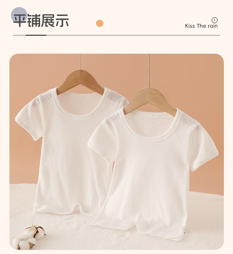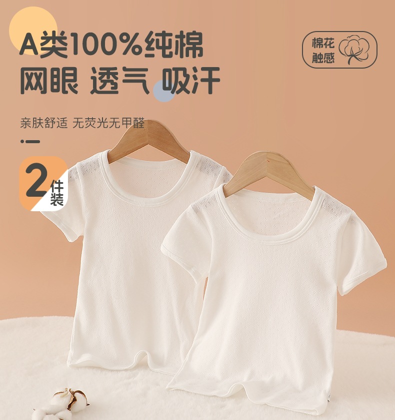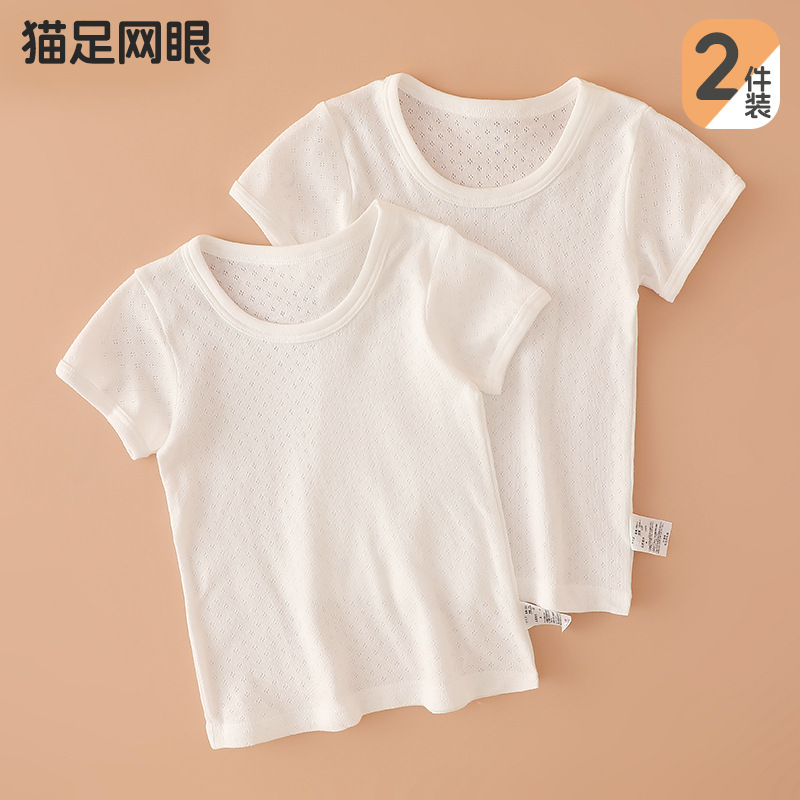 2 조각 여름 얇은 메쉬 어린이 짧은 소매 티셔츠 둥근 목 유치원 아기베이스 셔츠 소년 소녀 면 반 소매스토어 가기