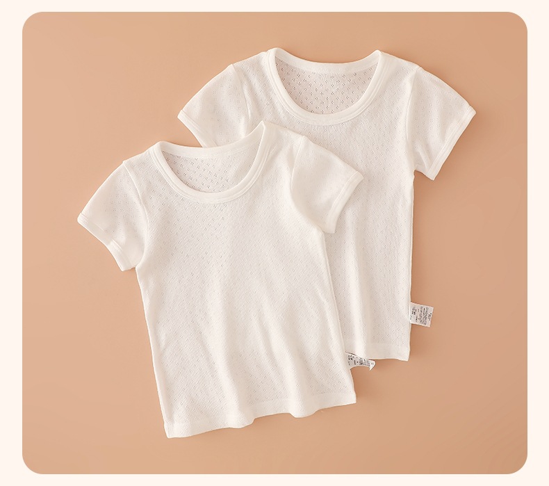 2 조각 여름 얇은 메쉬 어린이 짧은 소매 티셔츠 둥근 목 유치원 아기베이스 셔츠 소년 소녀 면 반 소매