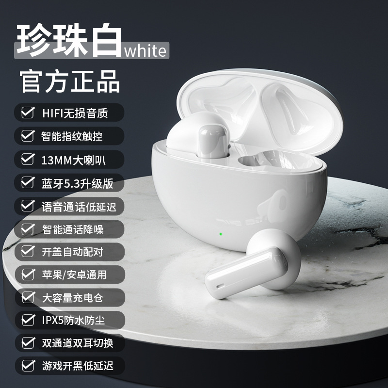 • 펄 화이트 [블루투스 5.3 업그레이드 칩 ★ HiFi 무손실 음질 ★ 매우 긴 배터리 수명]