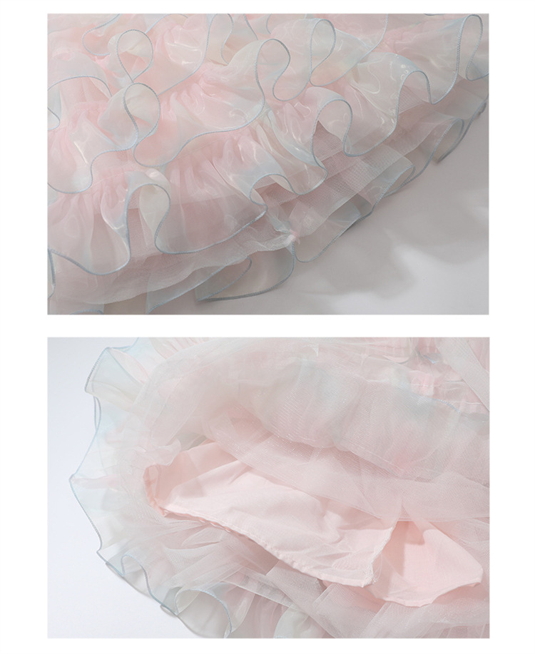 소녀 컬러 원사 버클 케이크 스커트 2025 여름 새로운 패션 소녀 세련된 공주 스커트 어린이 여름 원피스