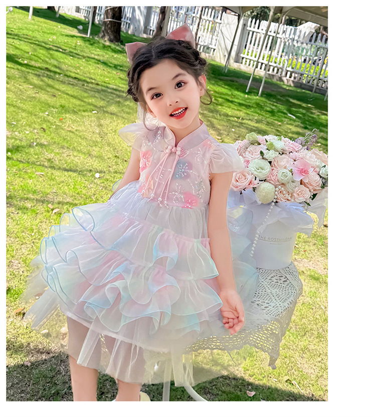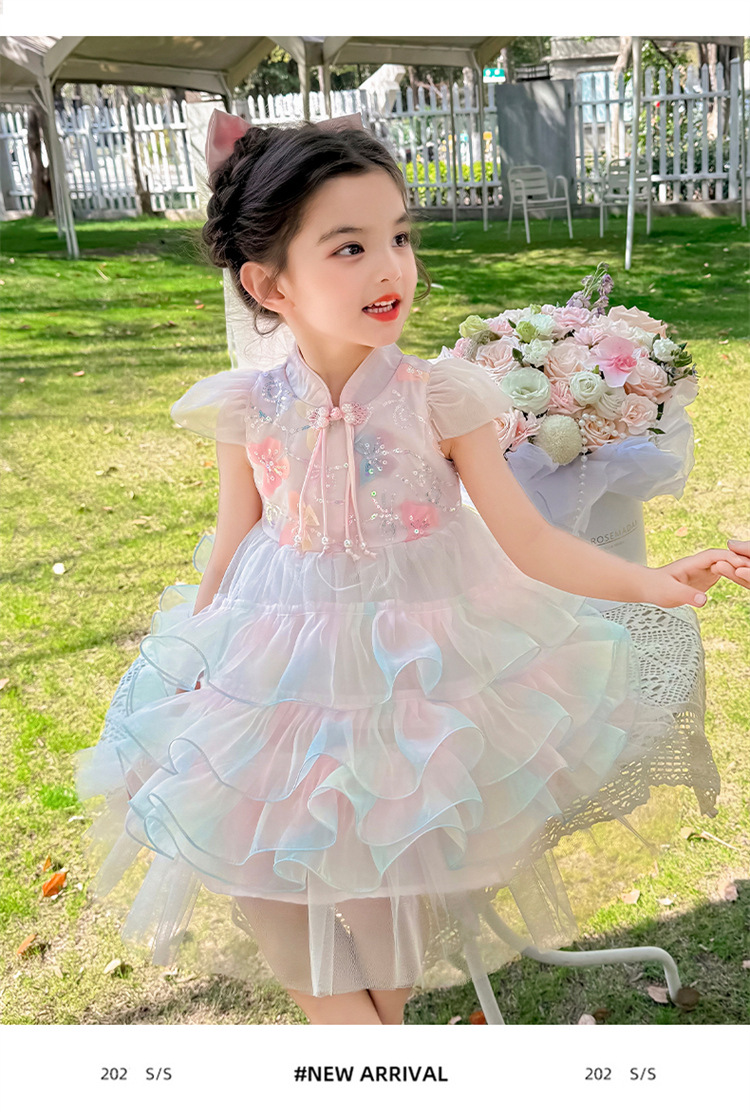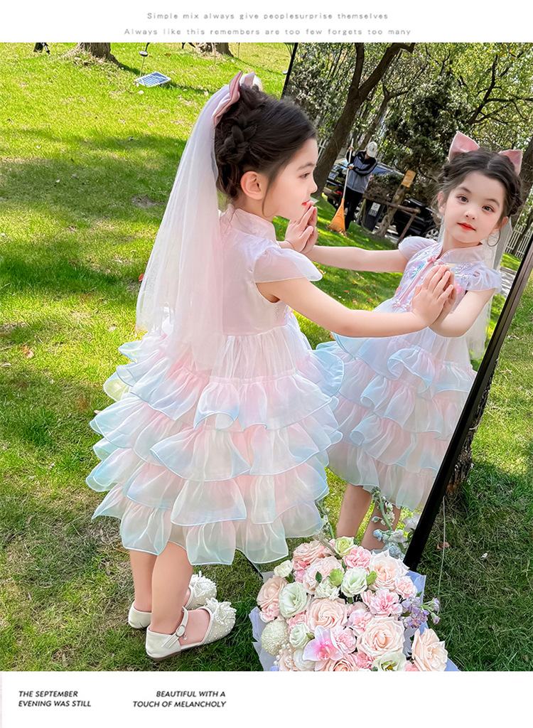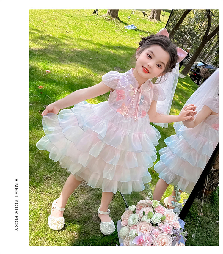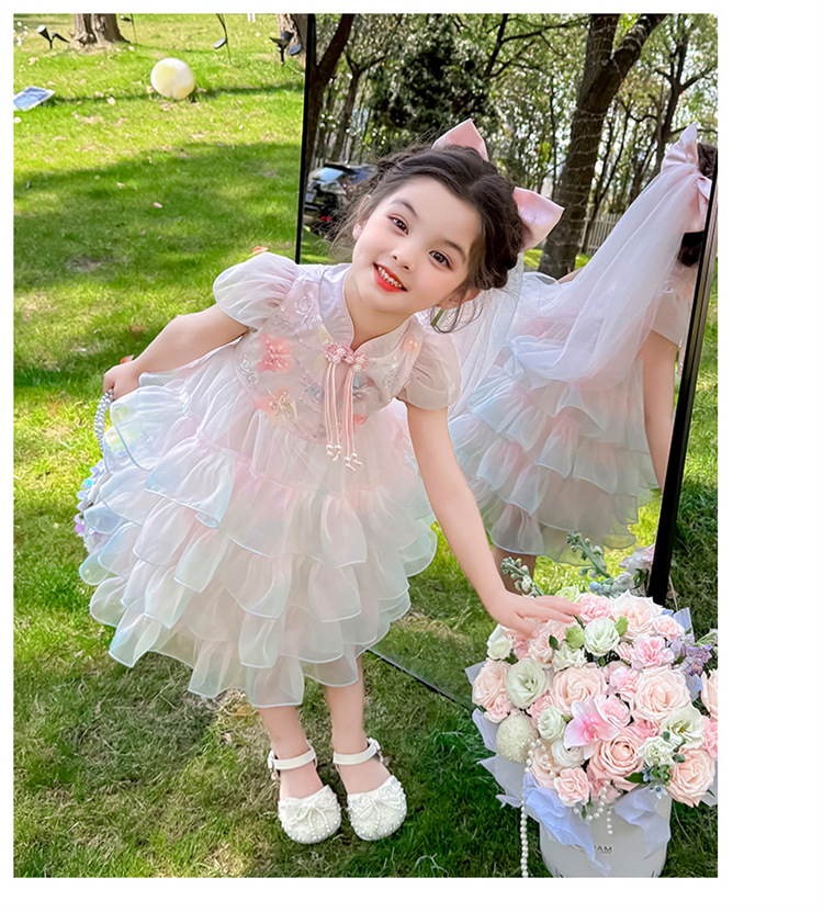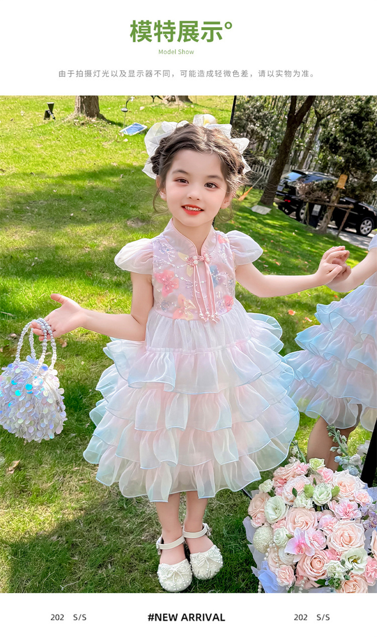 소녀 컬러 원사 버클 케이크 스커트 2025 여름 새로운 패션 소녀 세련된 공주 스커트 어린이 여름 원피스스토어 가기