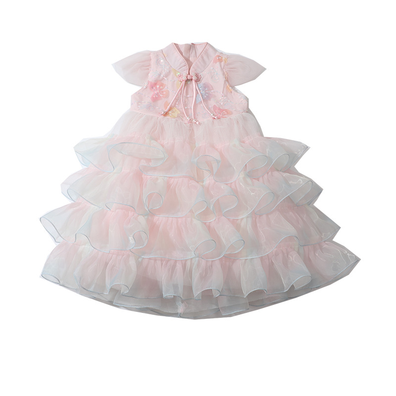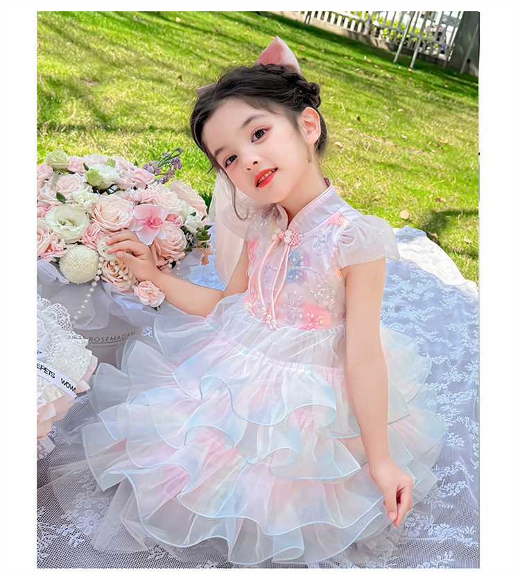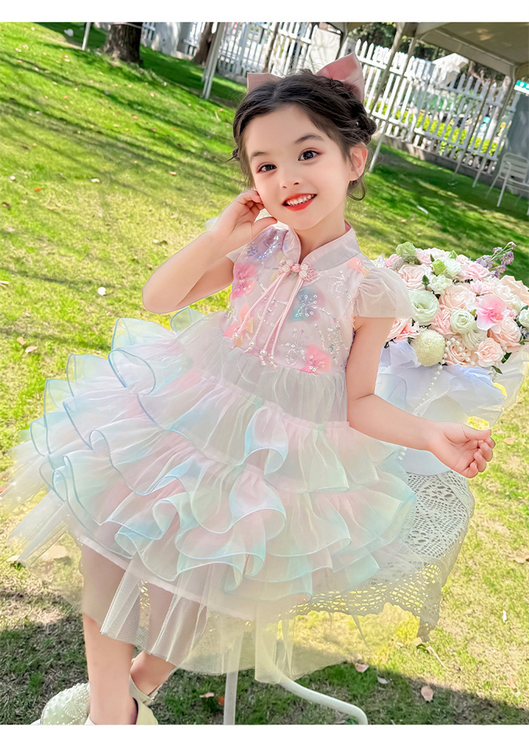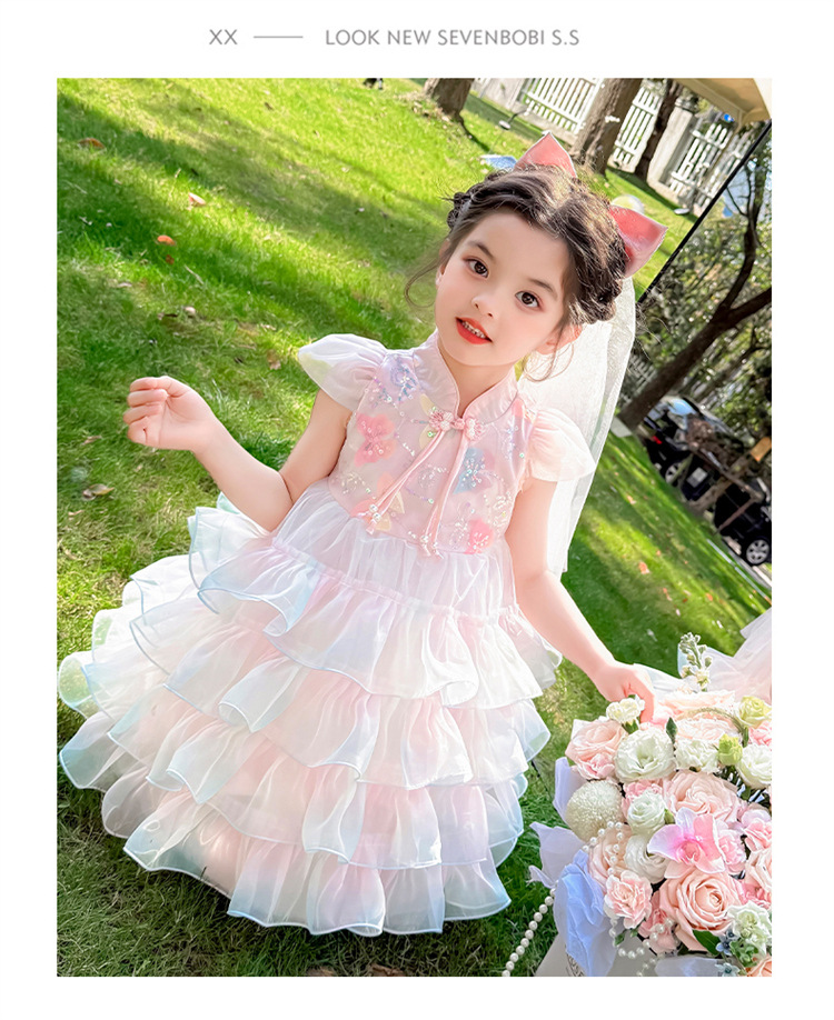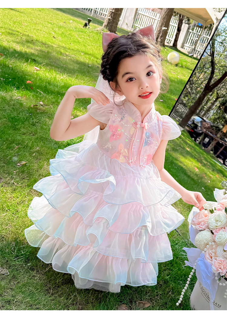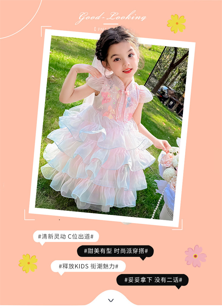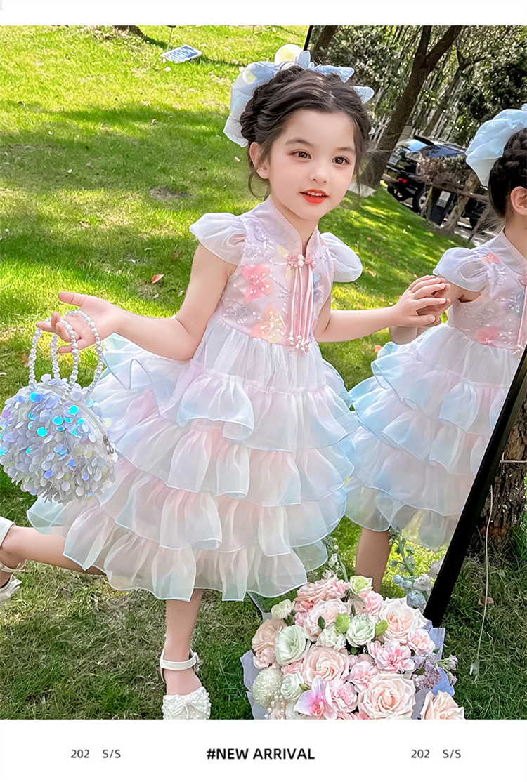 소녀 컬러 원사 버클 케이크 스커트 2025 여름 새로운 패션 소녀 세련된 공주 스커트 어린이 여름 원피스스토어 가기