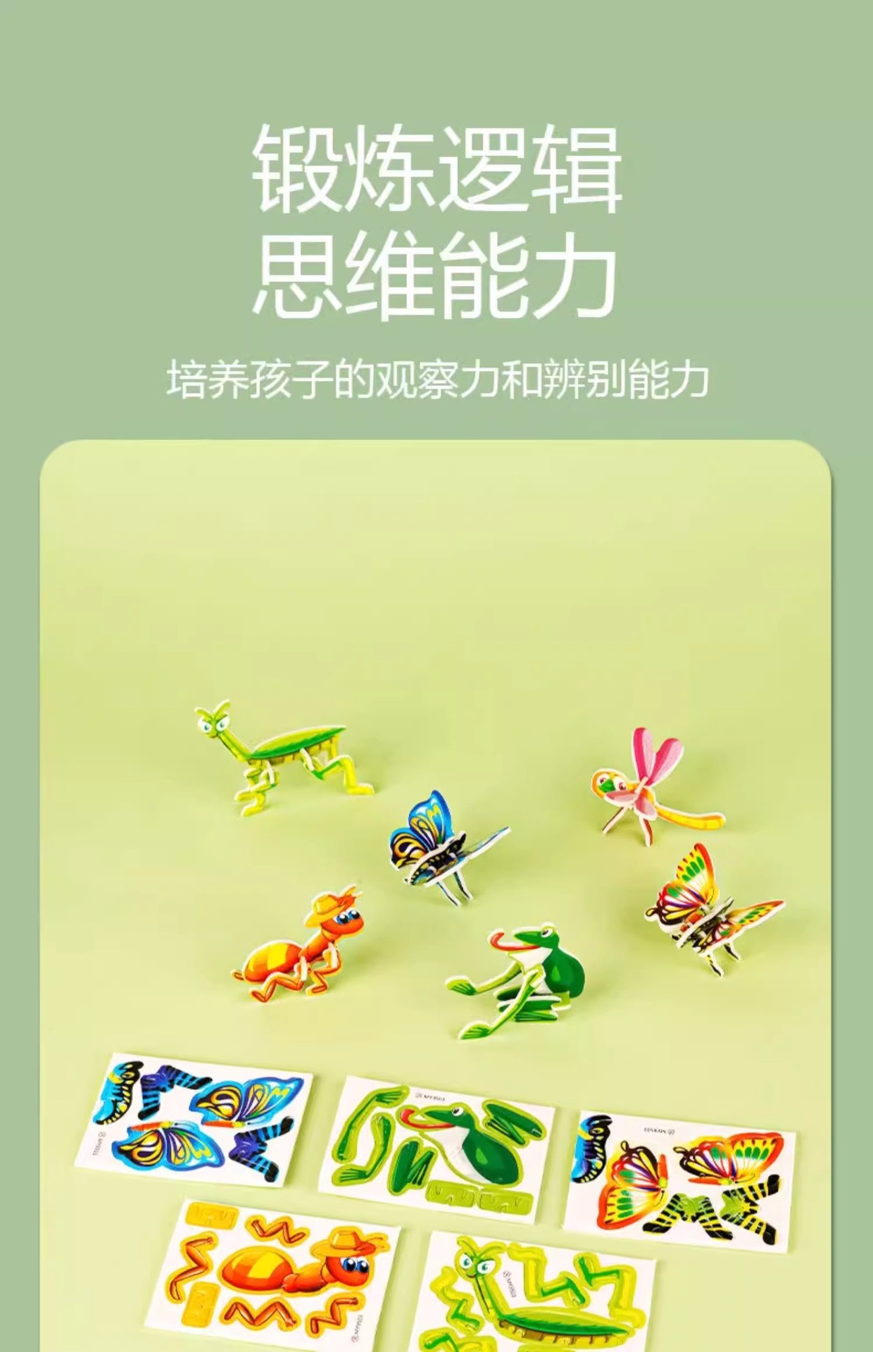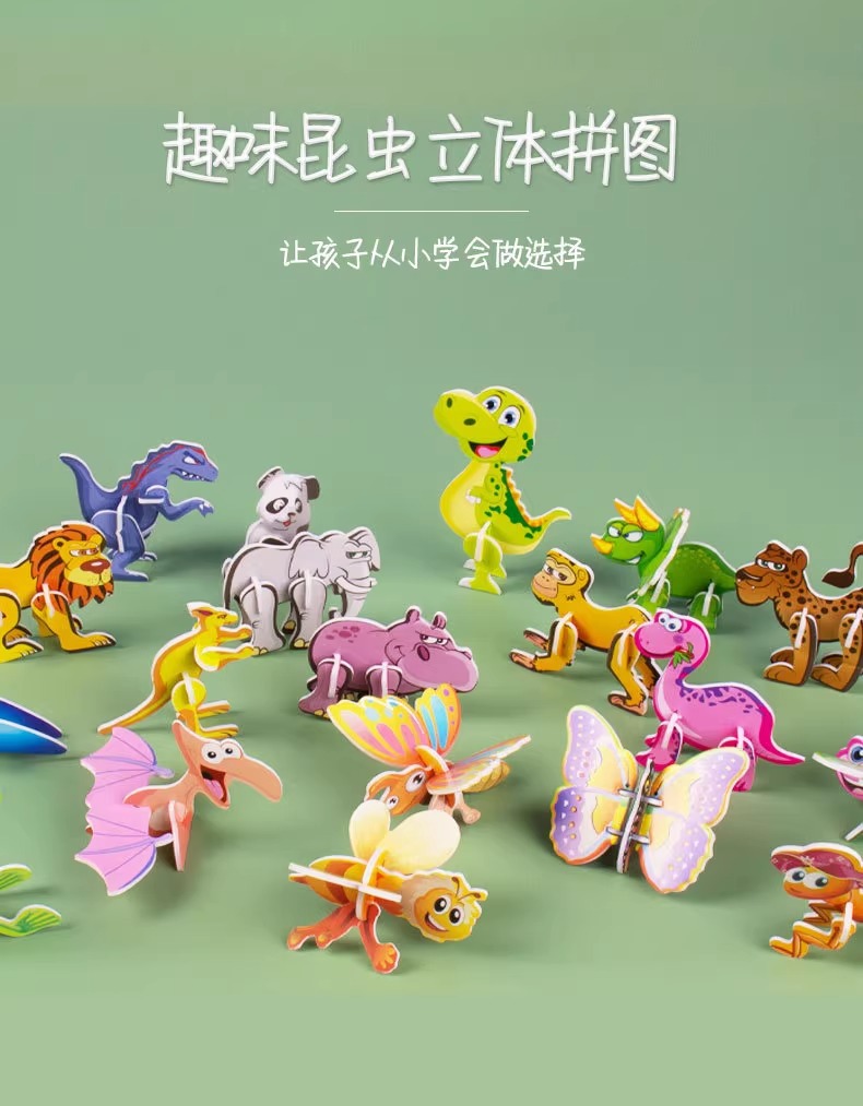3D 재미 곤충 입체 퍼즐 어린이 크리 에이 티브 DIY 장난감 3 ~ 6 세 조기 교육 손으로 조립 카드스토어 가기