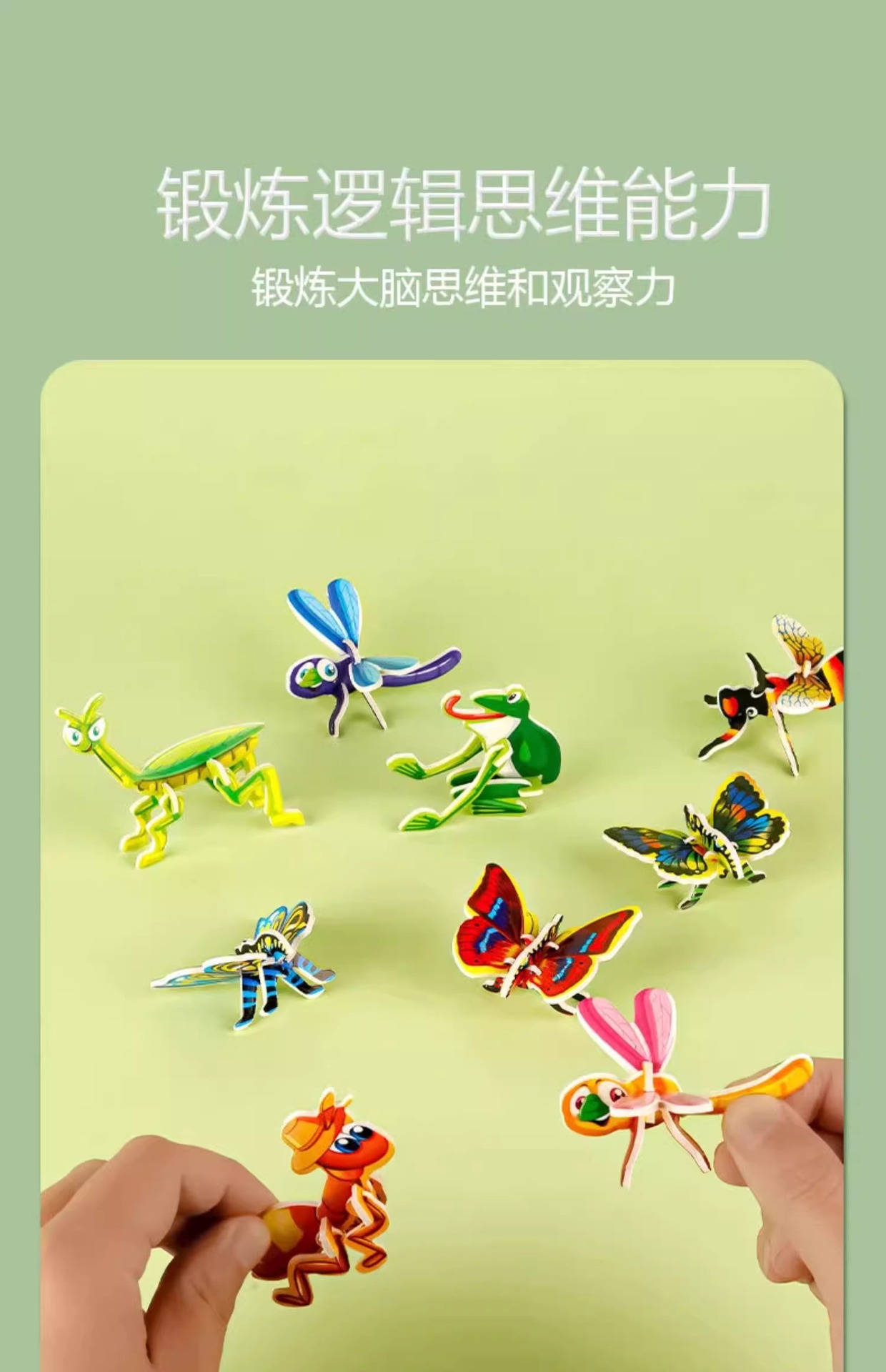3D 재미 곤충 입체 퍼즐 어린이 크리 에이 티브 DIY 장난감 3 ~ 6 세 조기 교육 손으로 조립 카드