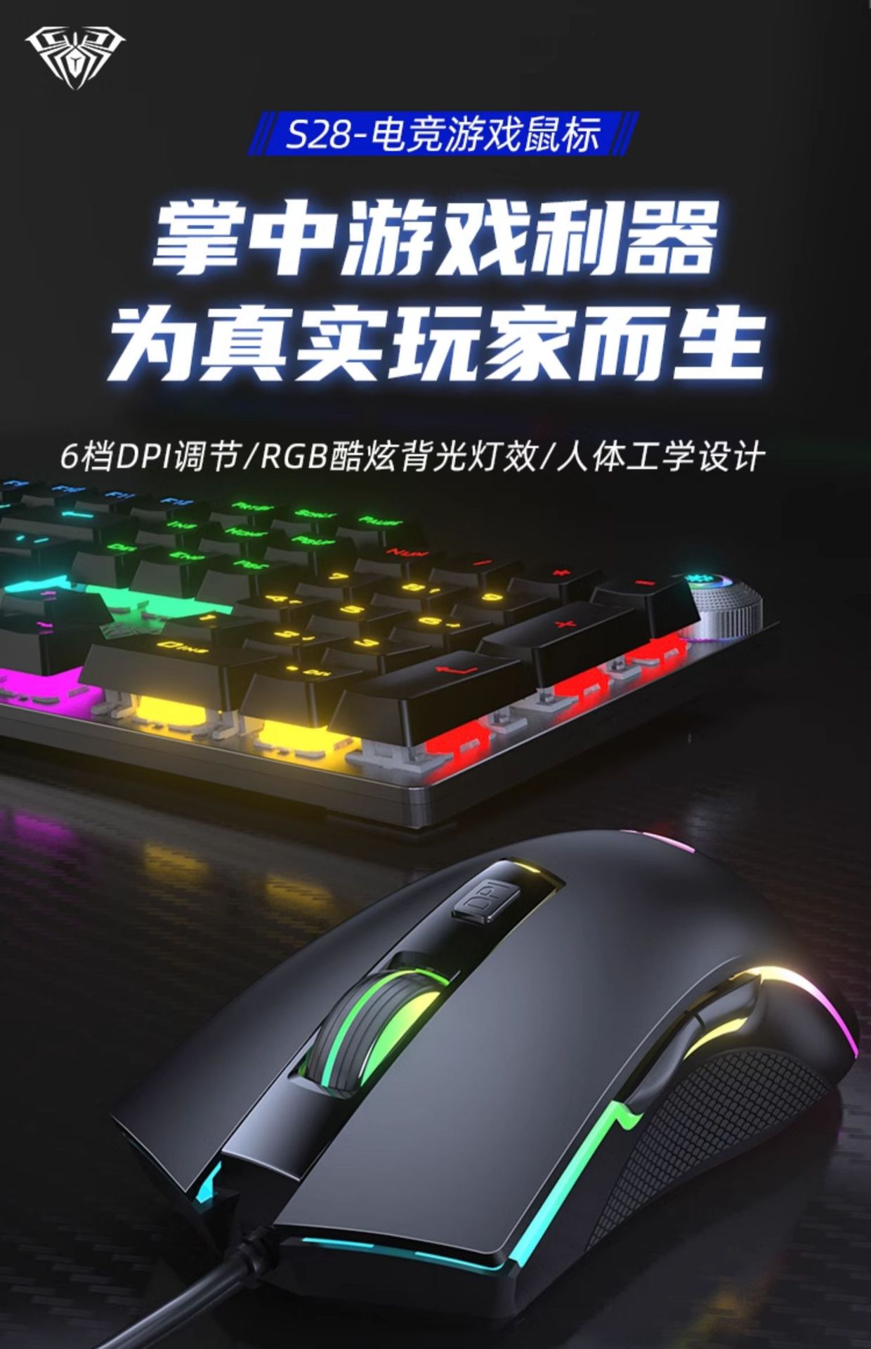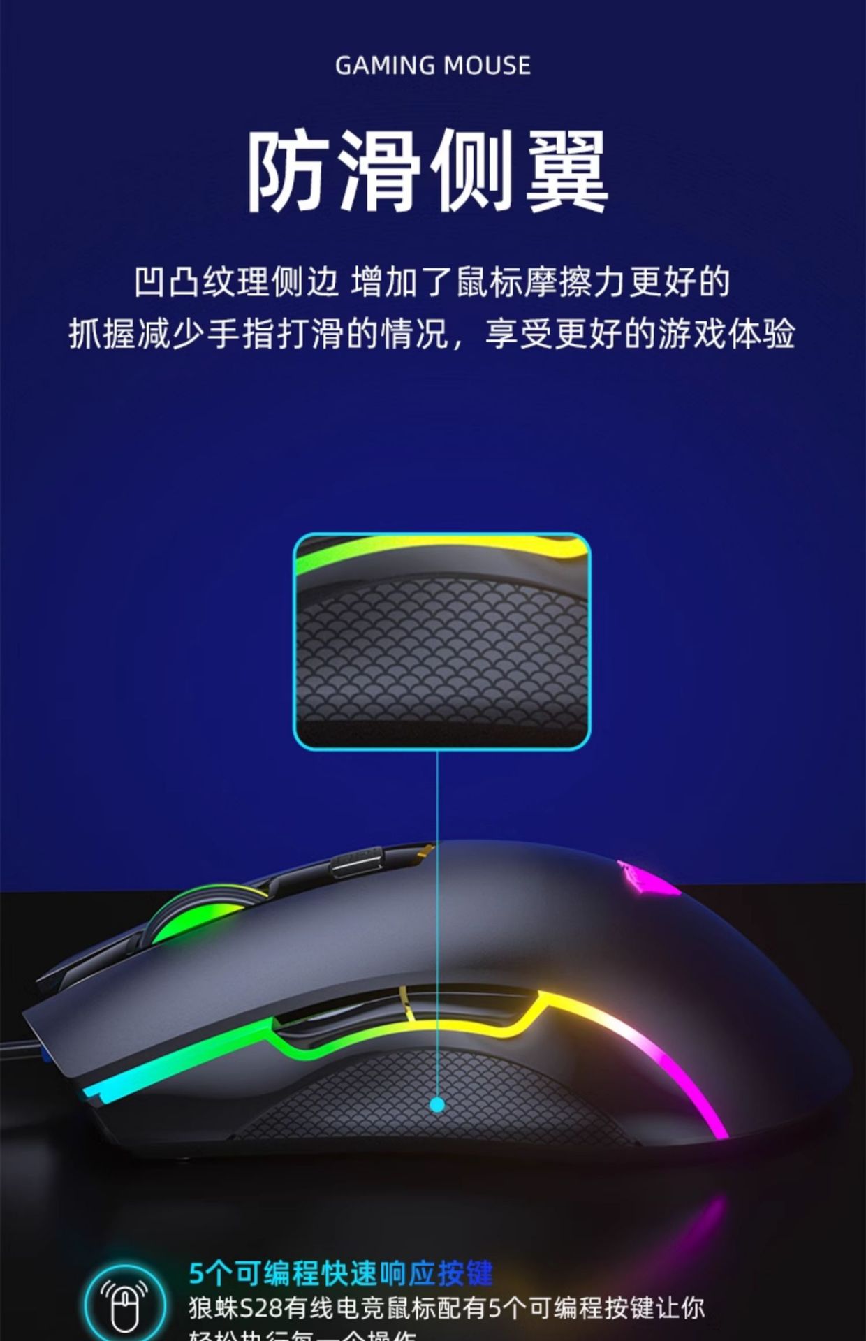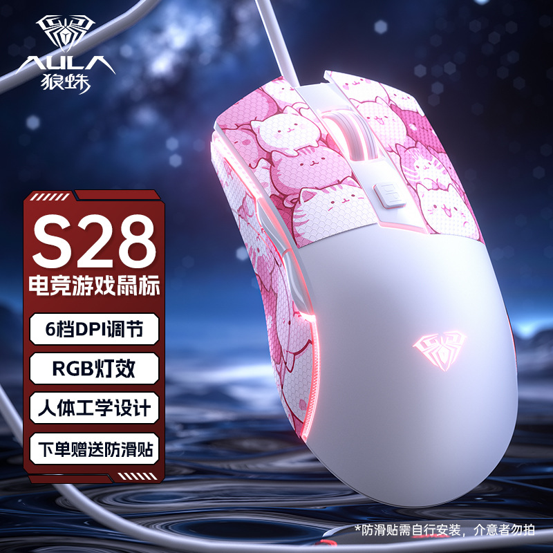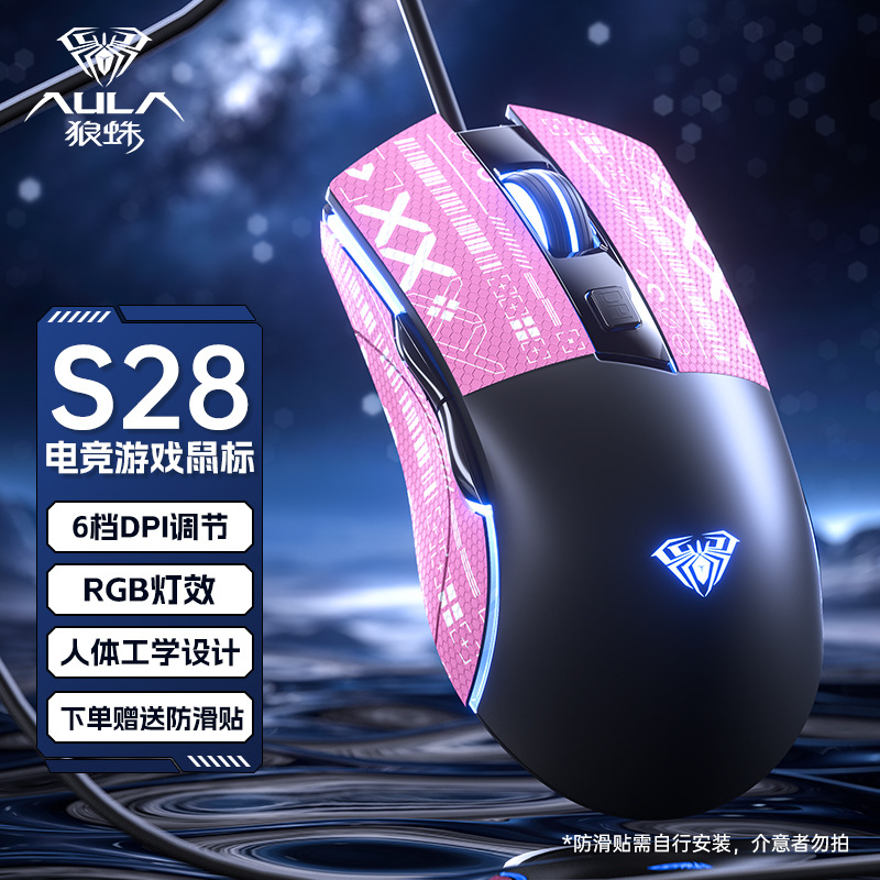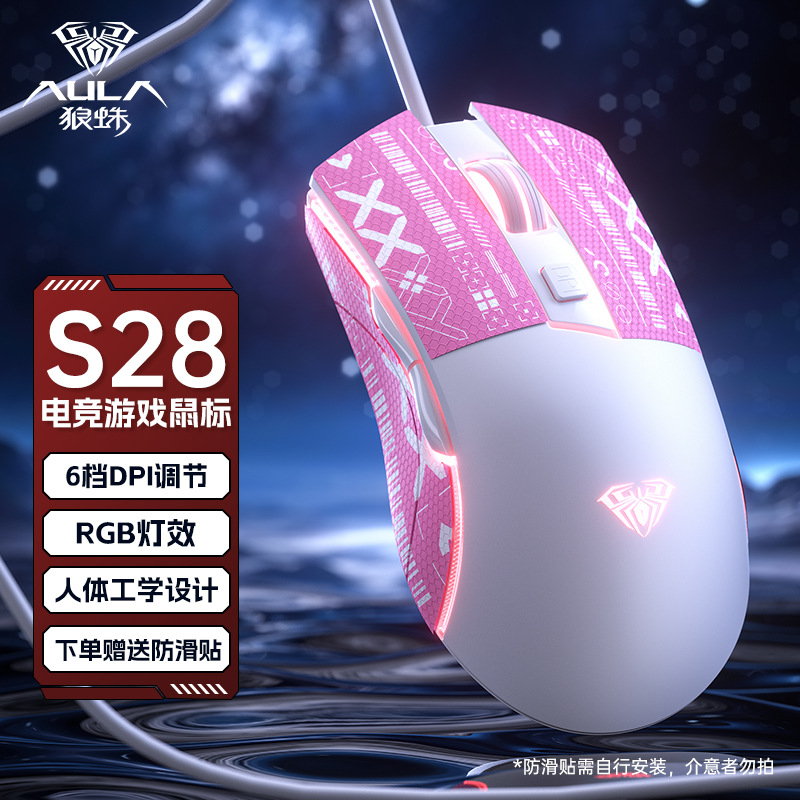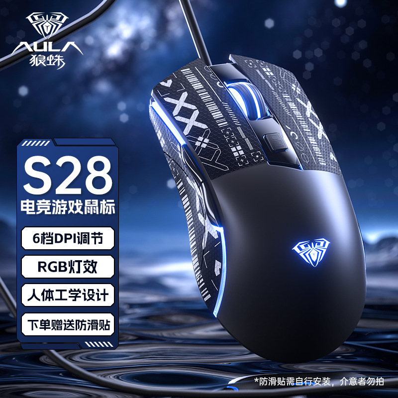 Wolf Spider S28 마우스 e-스포츠 게임 매크로 프로그래밍 유선 기계식 라이트 사운드 e-스포츠 데스크탑 노트북 범용 마우스