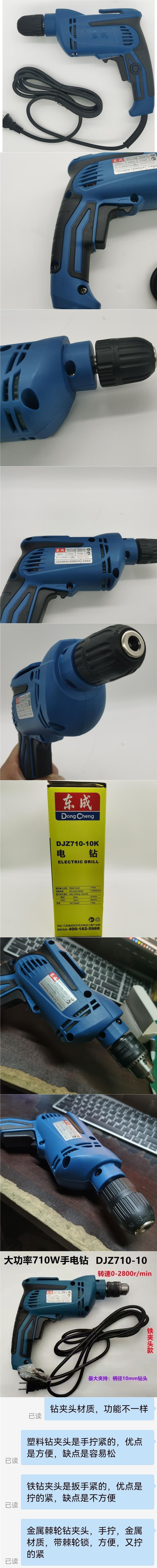 • Dongcheng 710W 고출력 핸드 드릴-10mm 플라스틱 자동 잠금 드릴 척