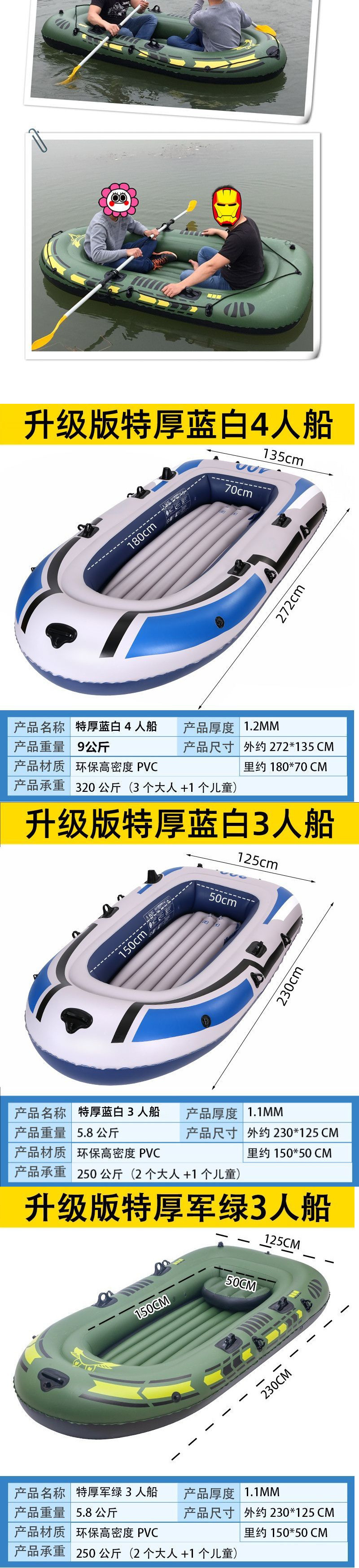 • 특후 군용 녹색 3인승 보트 [럭셔리 패키지] 무료 배송 패키지