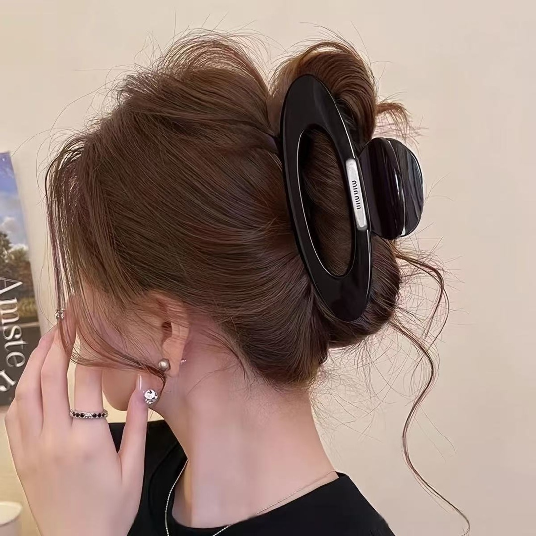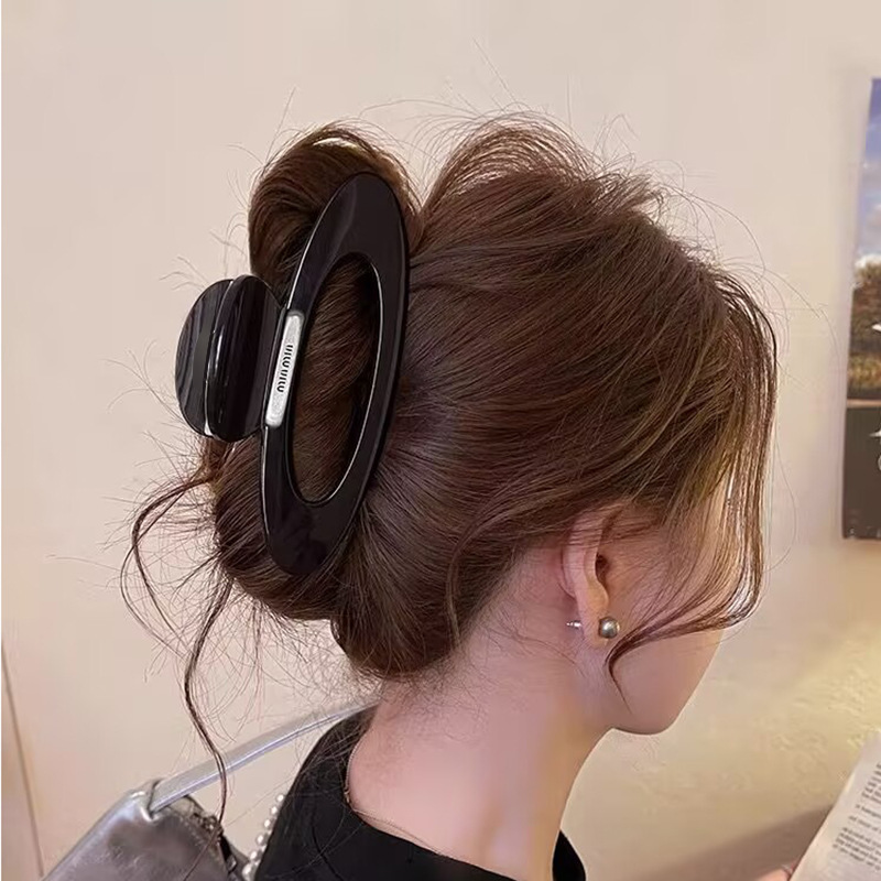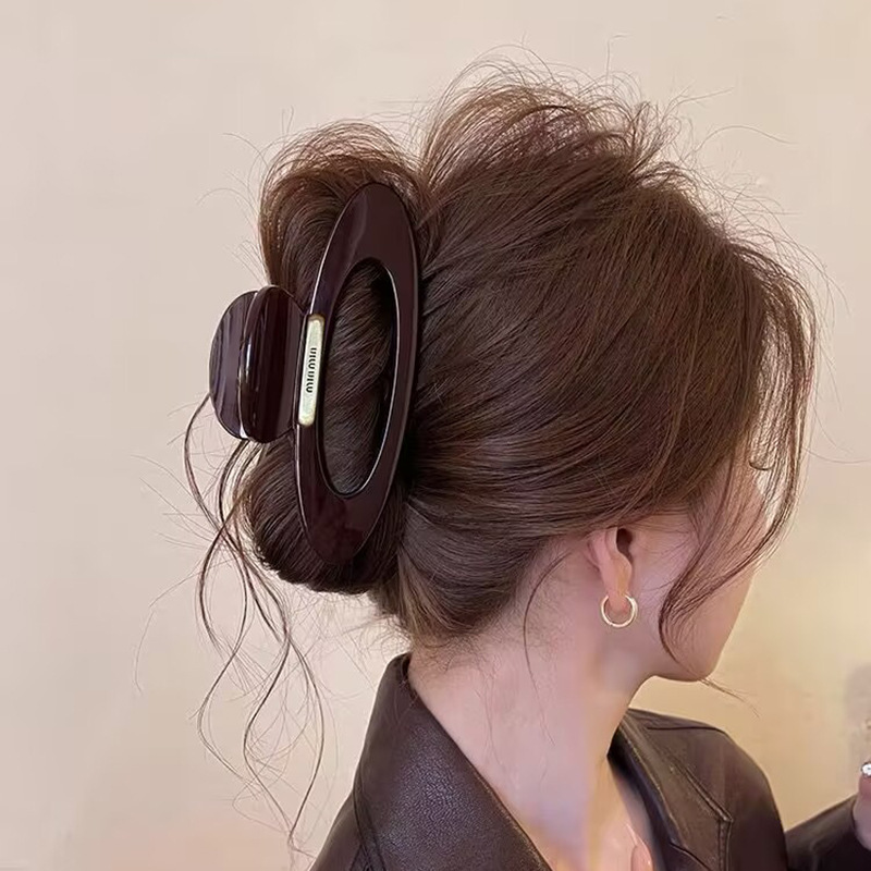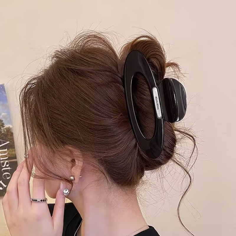 중공 타원형 골드 라벨 헤어 클립 여성용 하이 엔드 센스 2025 새로운 백 헤드 헤어 클립 상어 클립 헤드폰