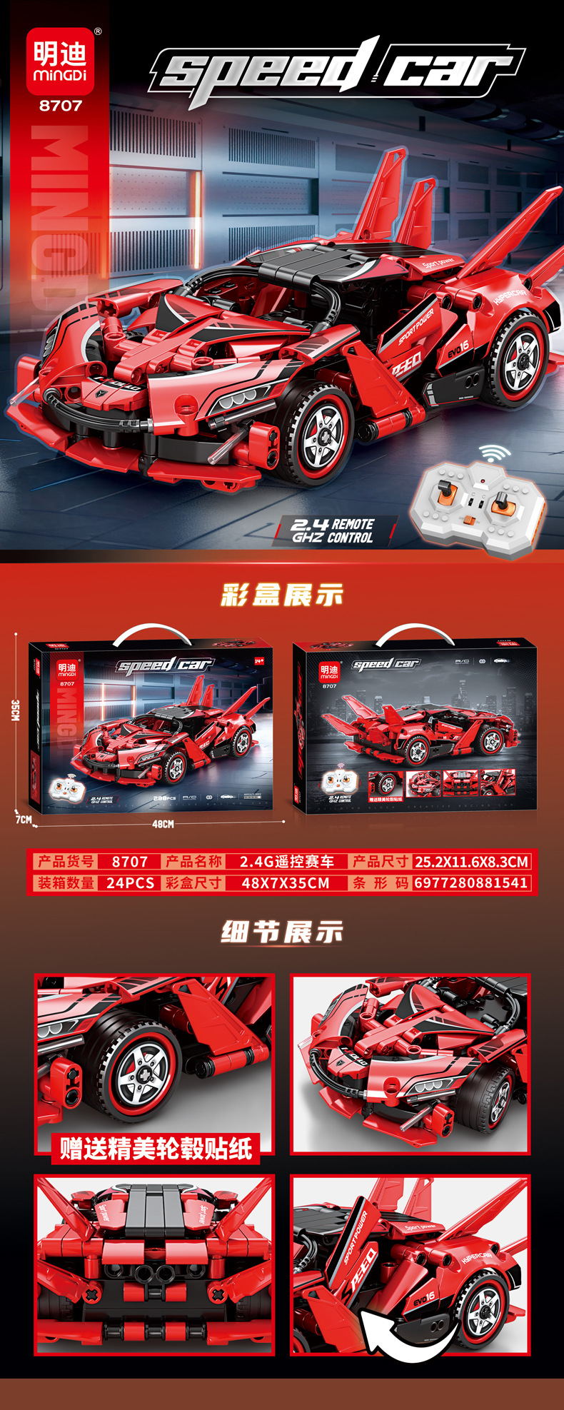 • 8707-2.4G 기술 원격 제어 자동차 [48cm 대형 컬러 박스]