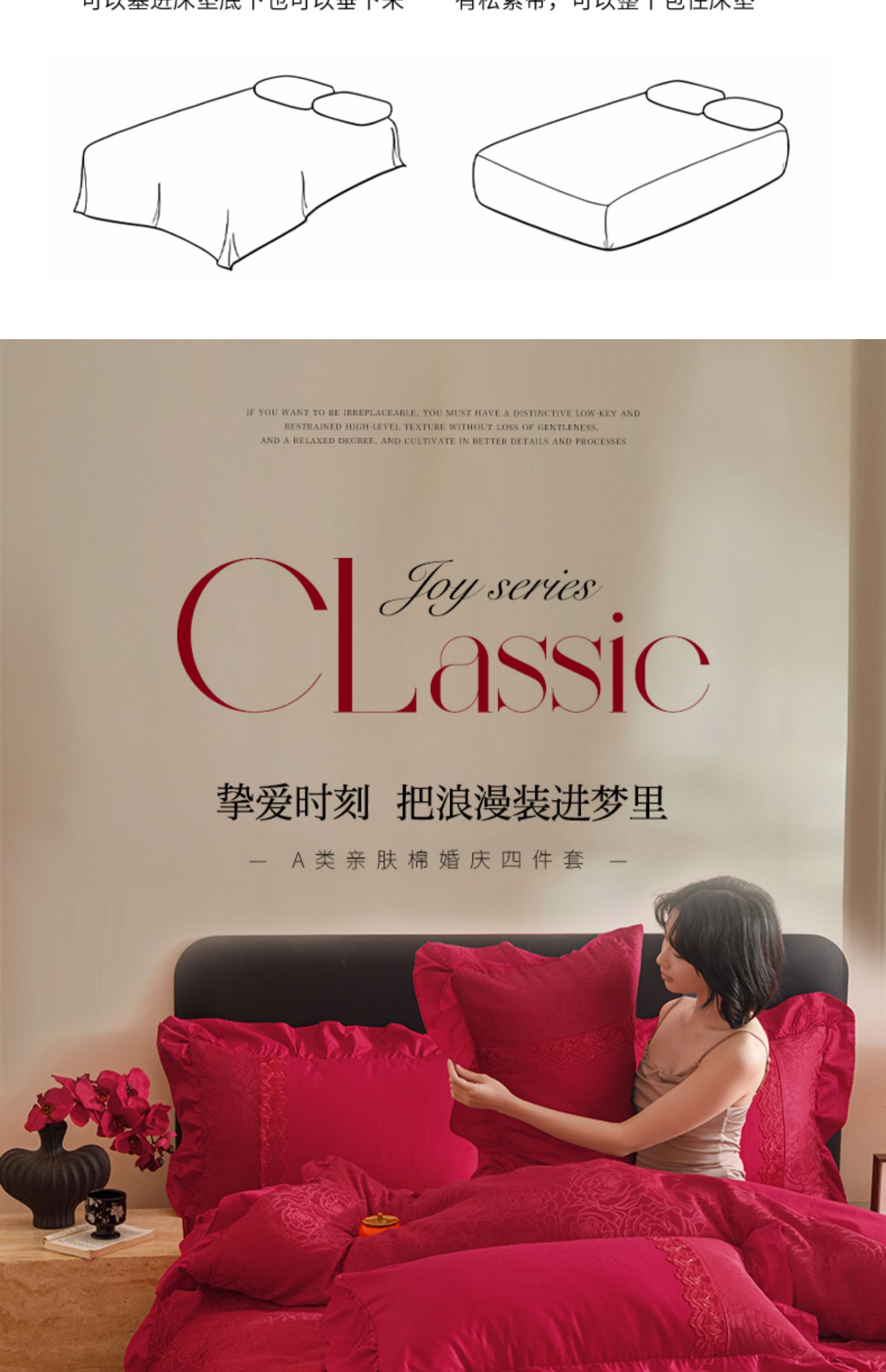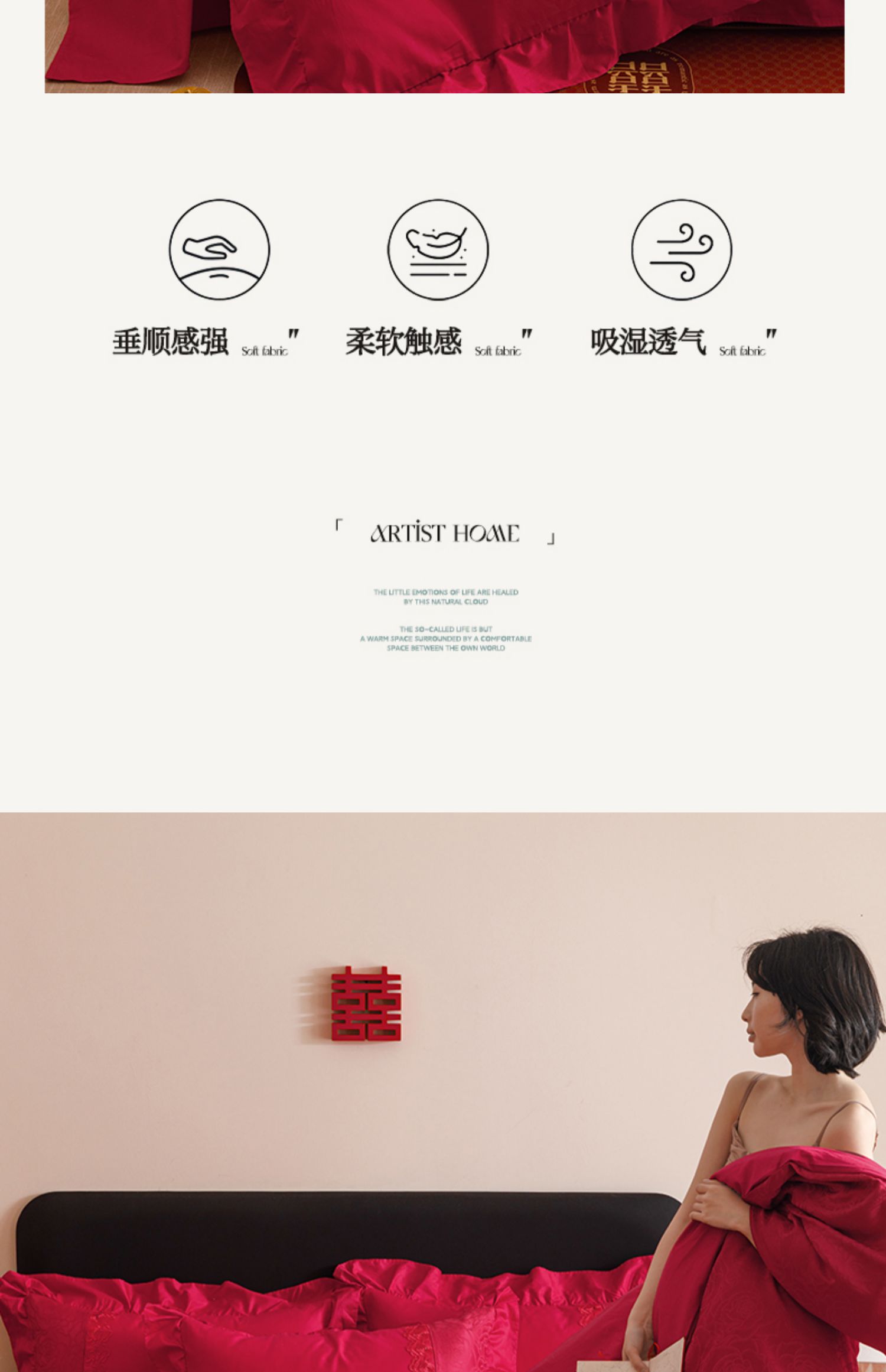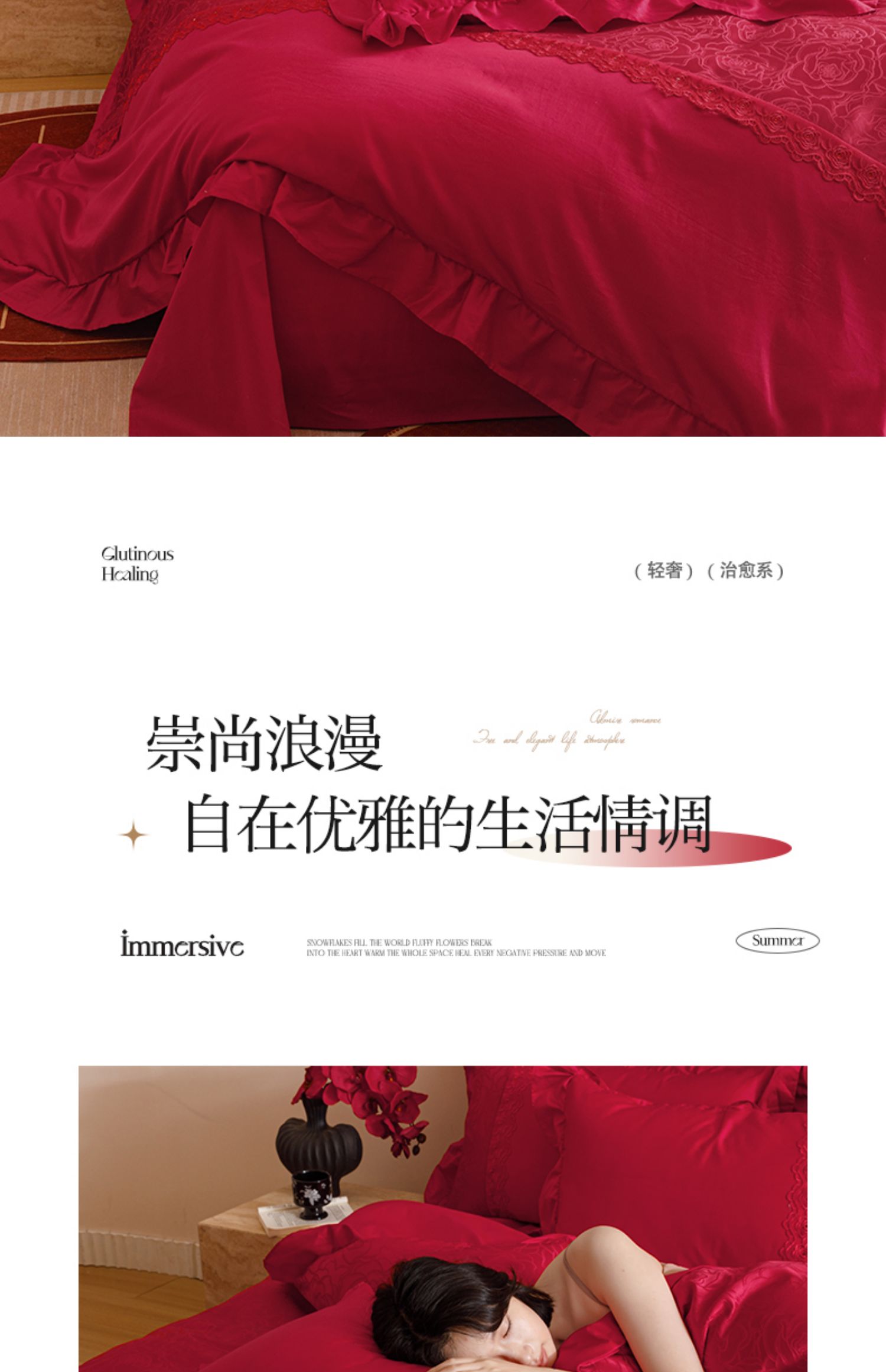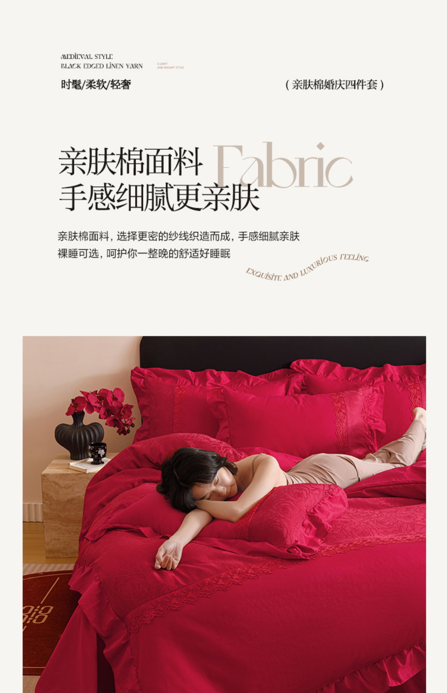 중국 웨딩 레드 침대 4 피스 세트 하이 엔드 웨딩 다우리 피부 친화적 인 퀼트 커버 침대 시트 매트리스 웨딩 침구스토어 가기