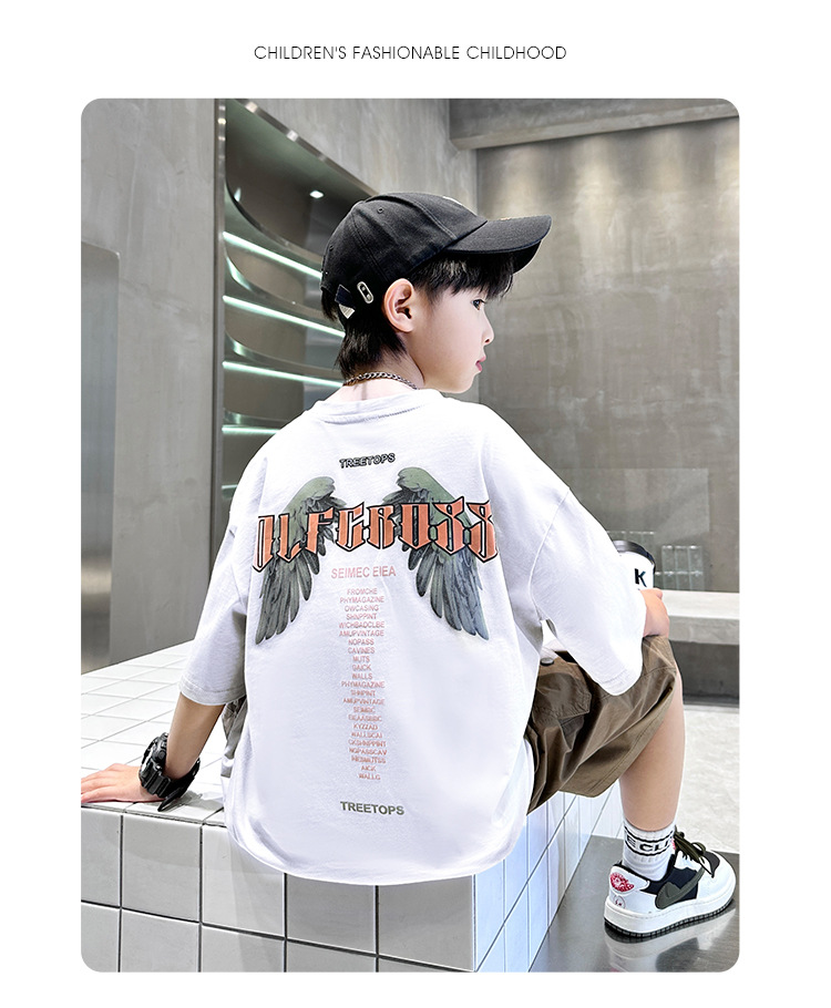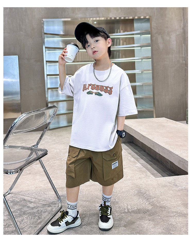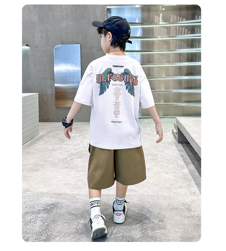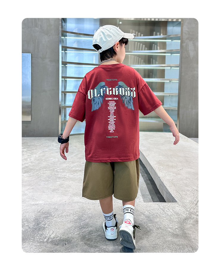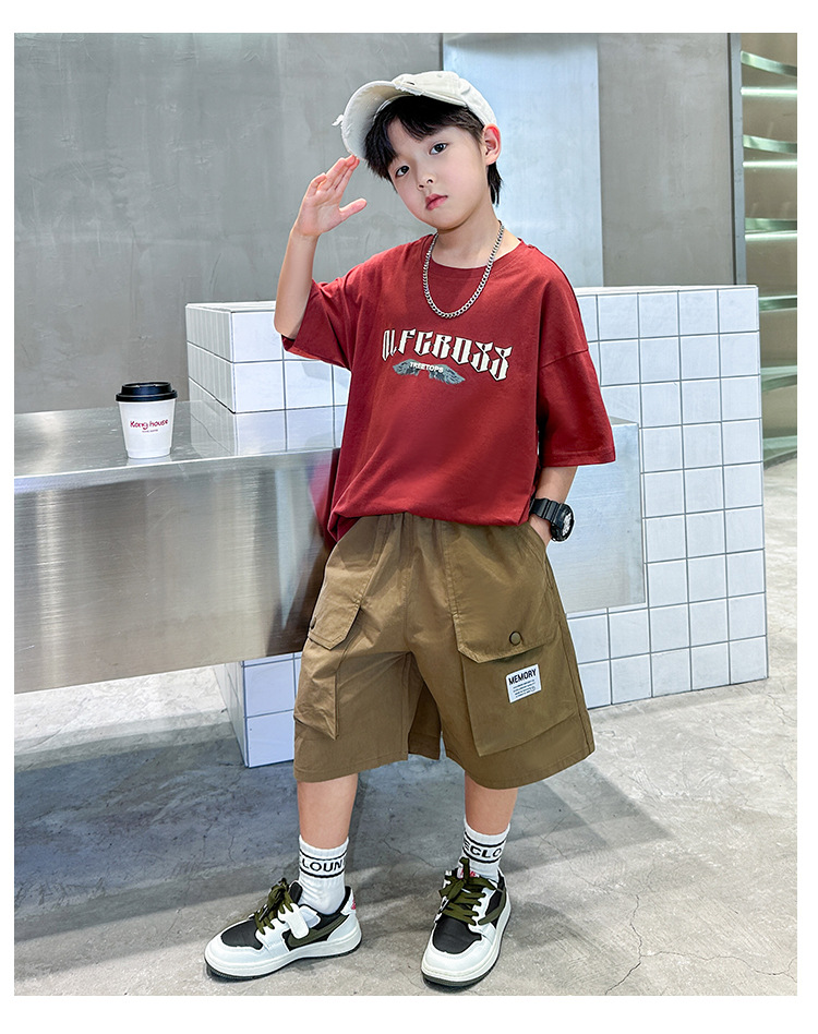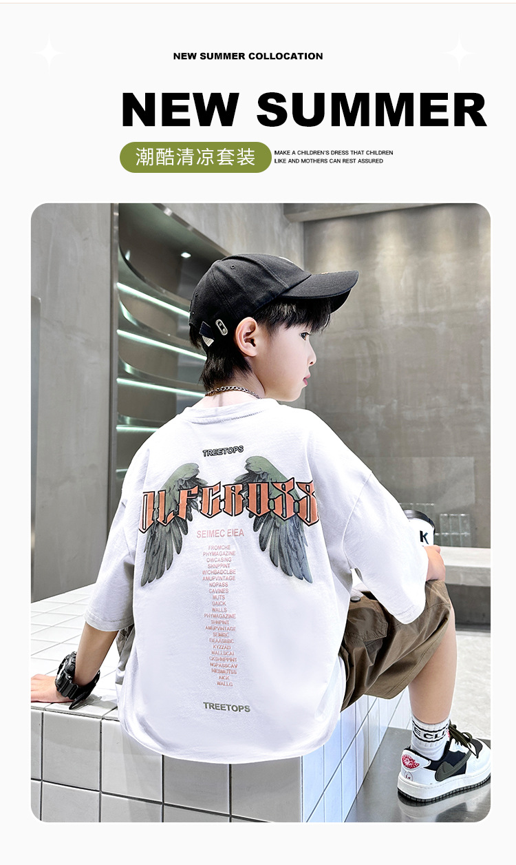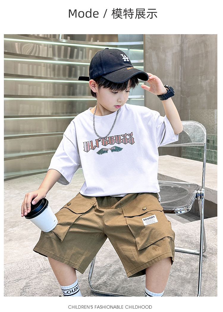 어린이 착용 소년 여름 착용 세트 2025 새로운 도착 CUHK 어린이 여름 캐주얼 느슨한 반팔 얇은 투피스 유행 세트