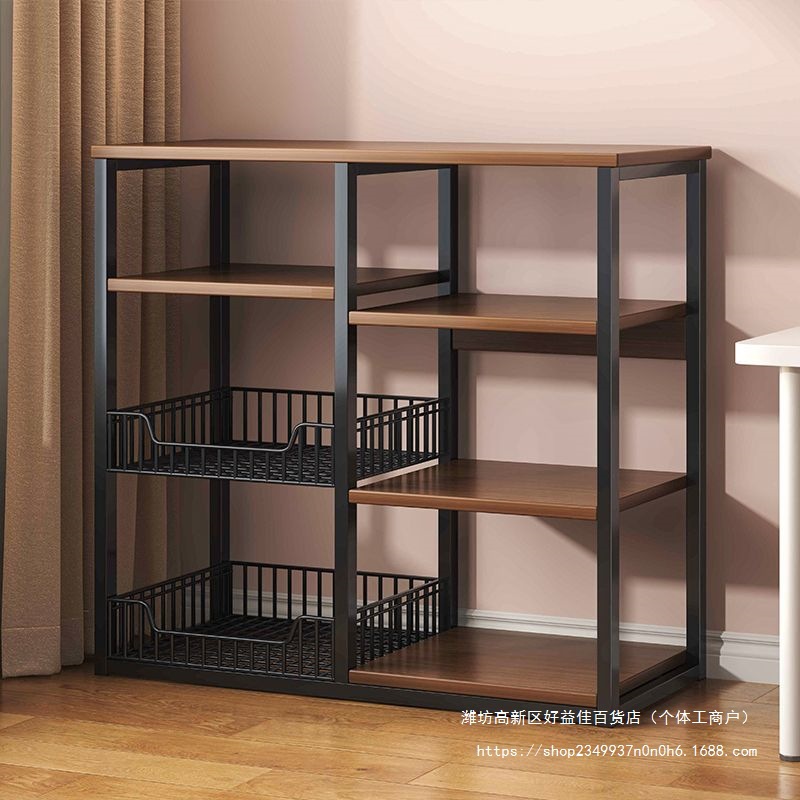• Haoyijia 메인 사진 4층 모델 블랙 오크 색상 80*101cm + 메쉬 바구니 2개#