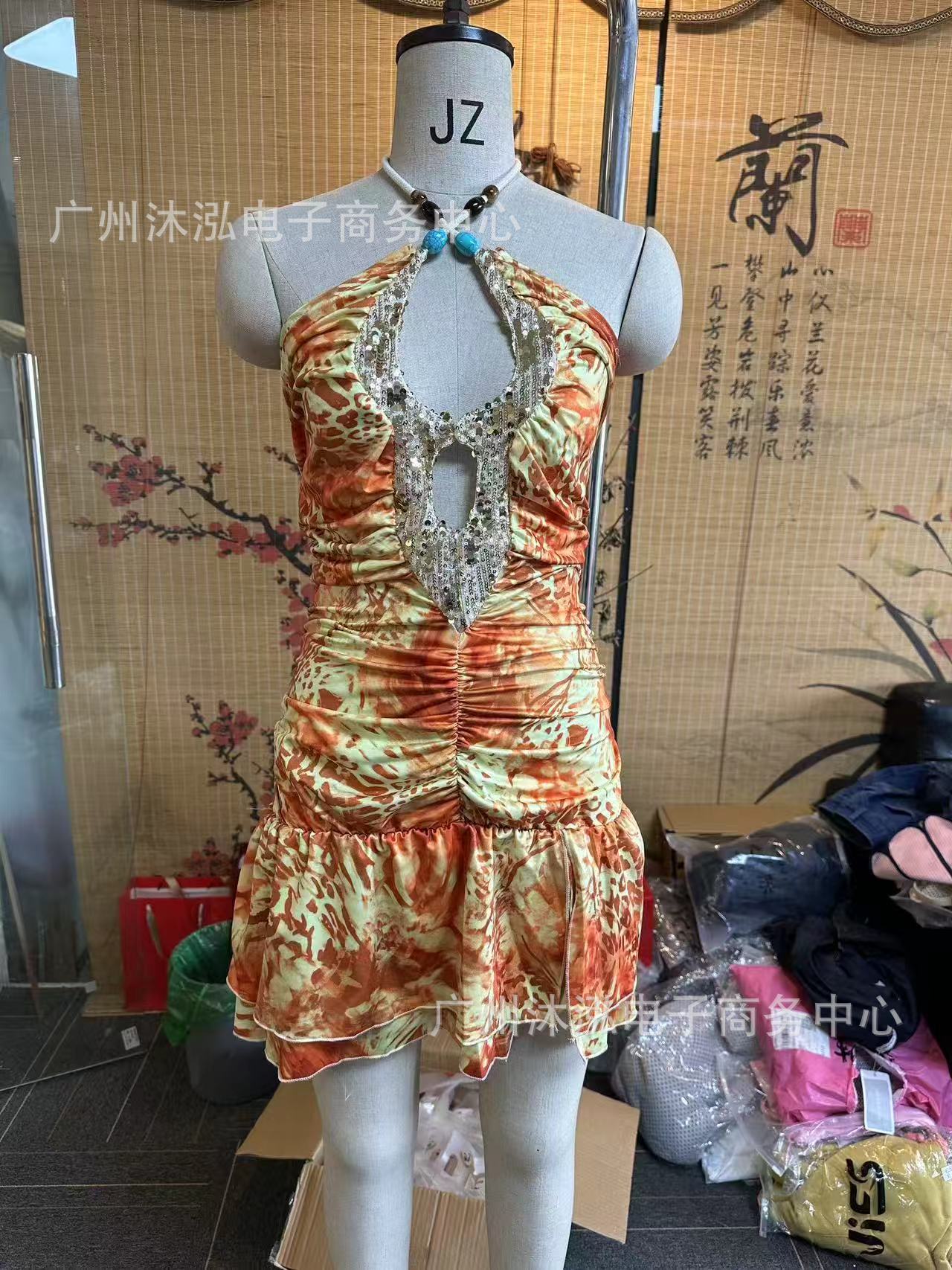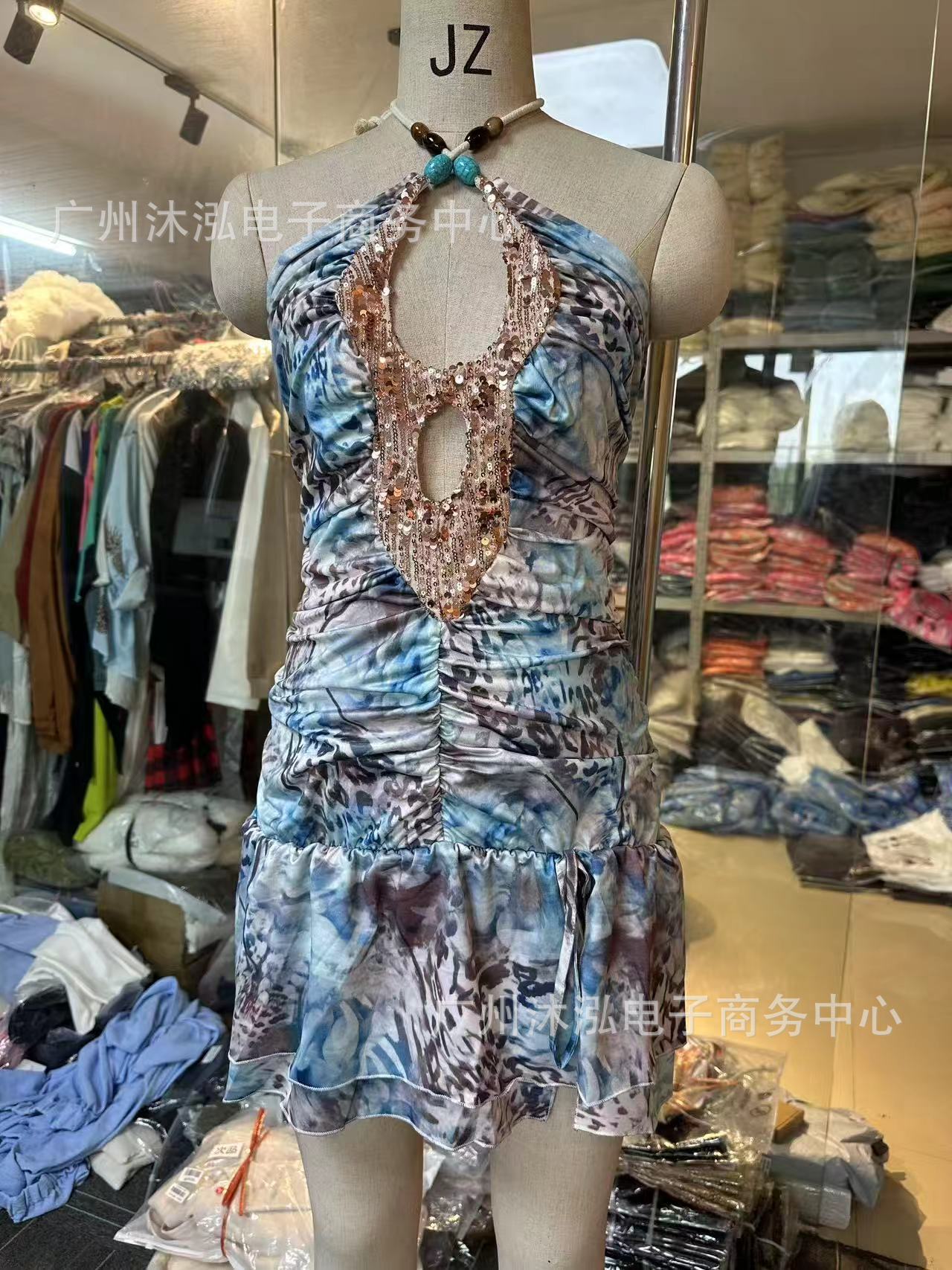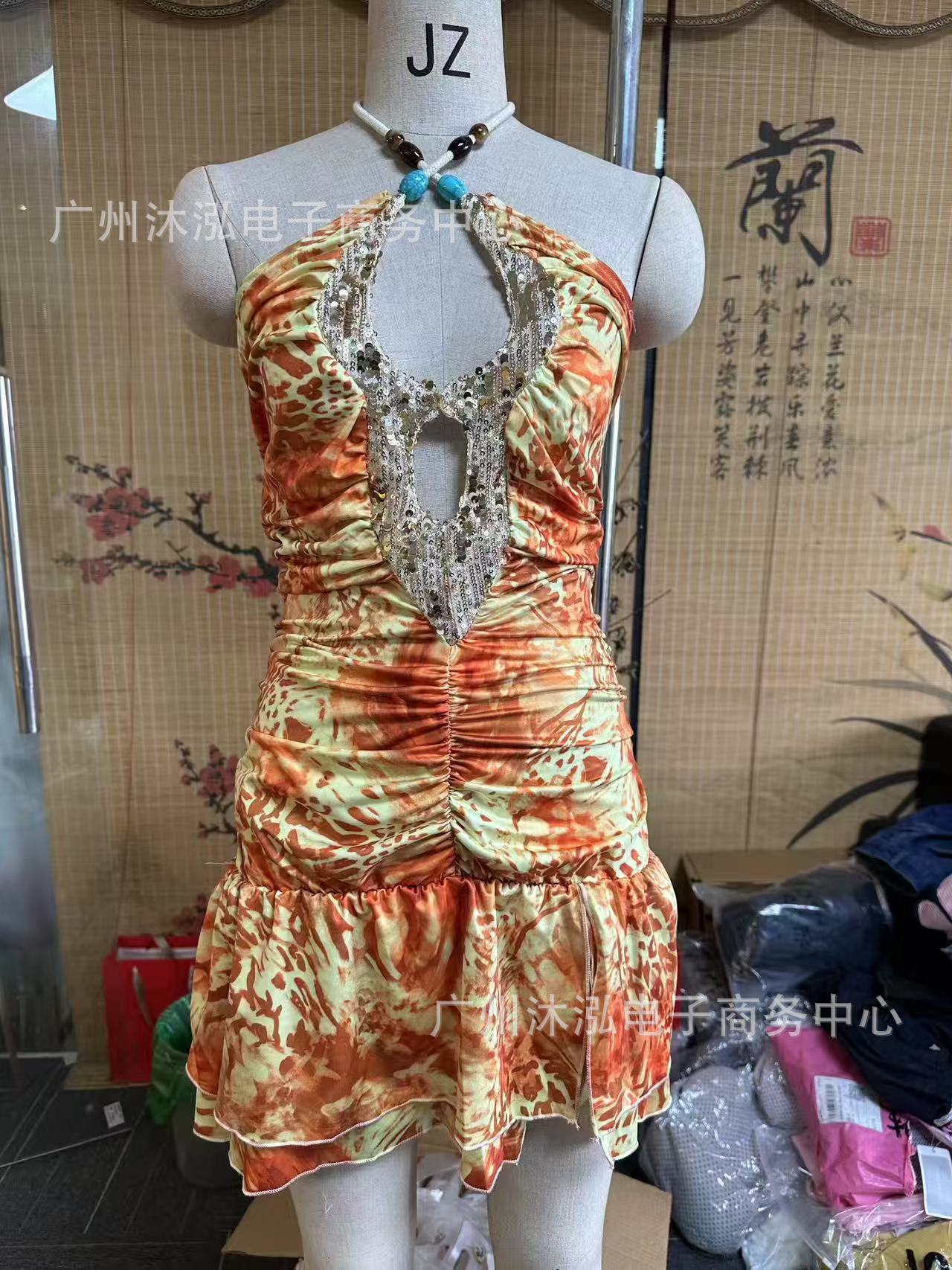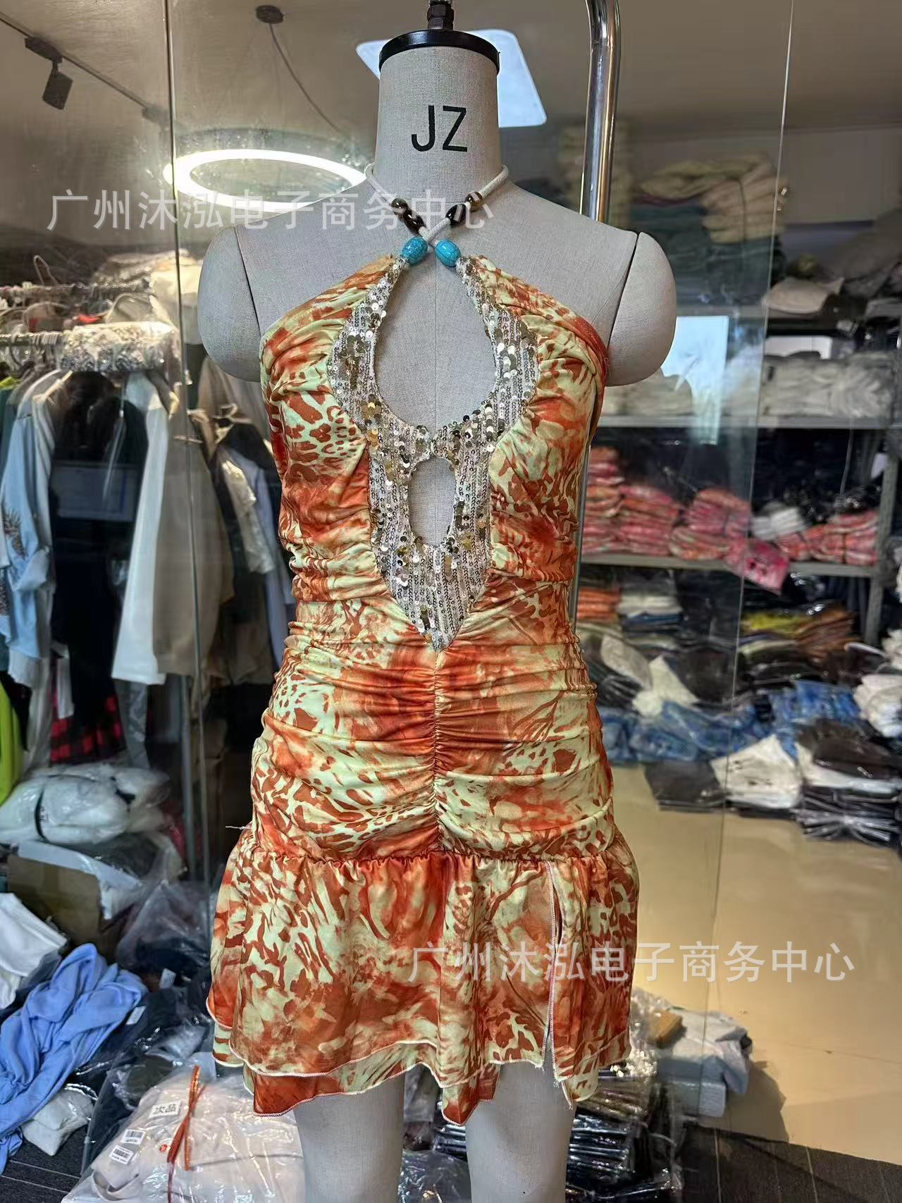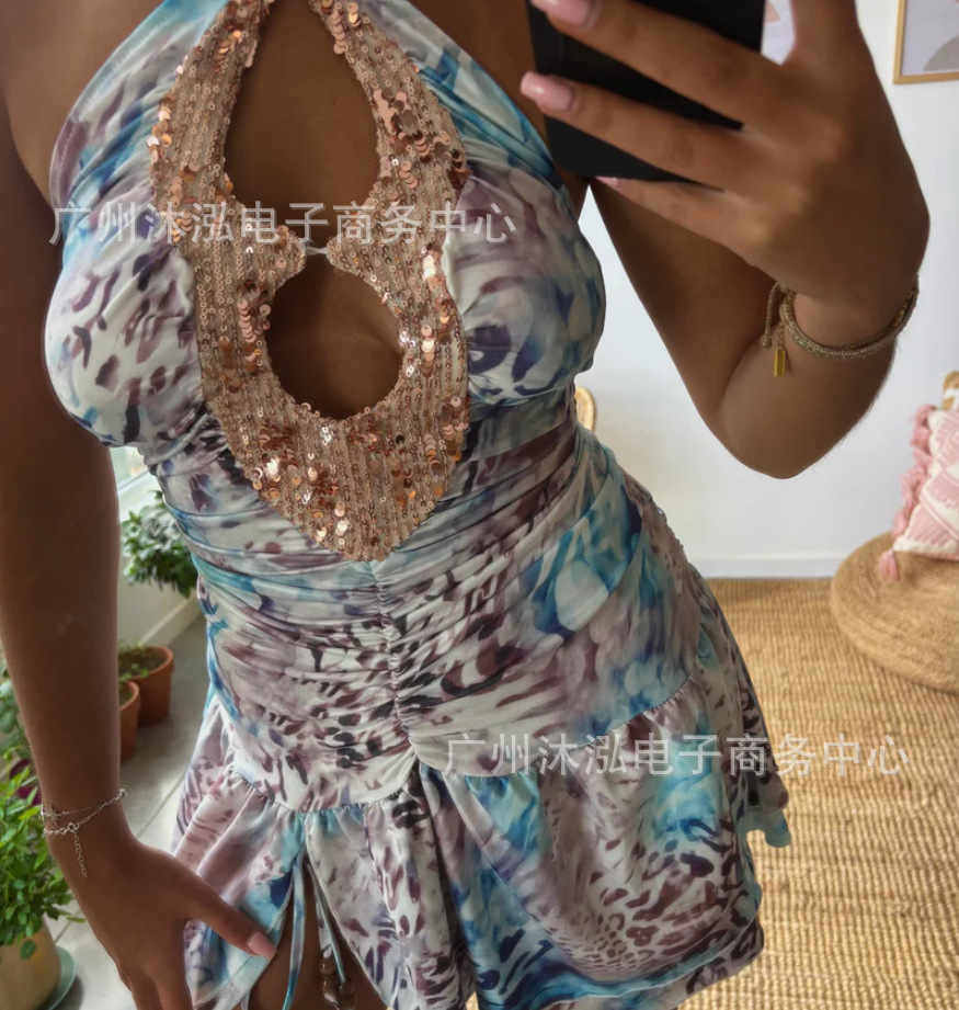 2025 유럽과 미국의 여름 국경 새로운 V-목 섹시한 스파이스 민소매 목 백리스 Sequin Stitching 원피스스토어 가기