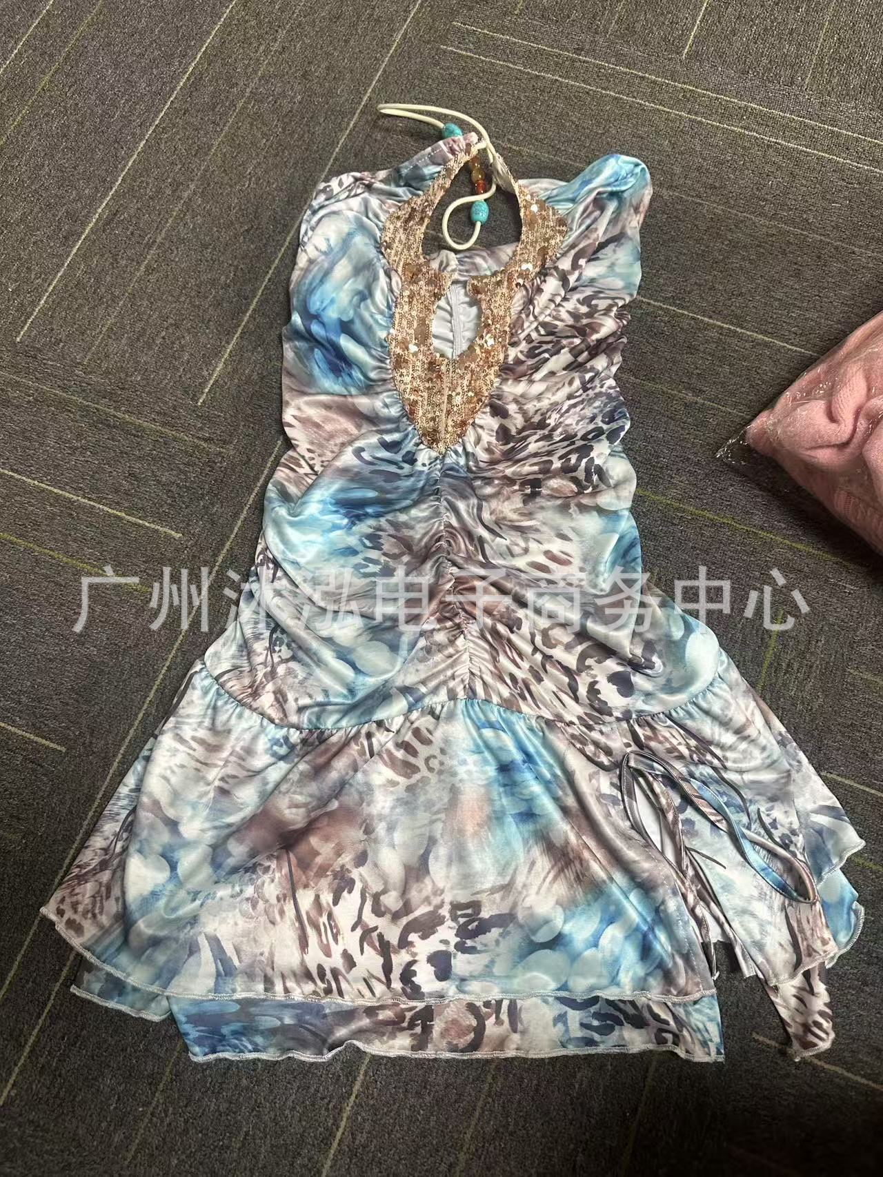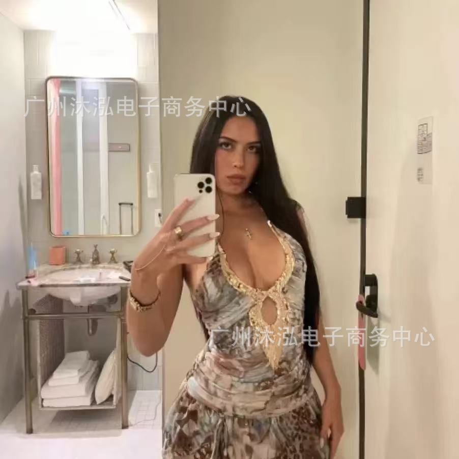 2025 유럽과 미국의 여름 국경 새로운 V-목 섹시한 스파이스 민소매 목 백리스 Sequin Stitching 원피스