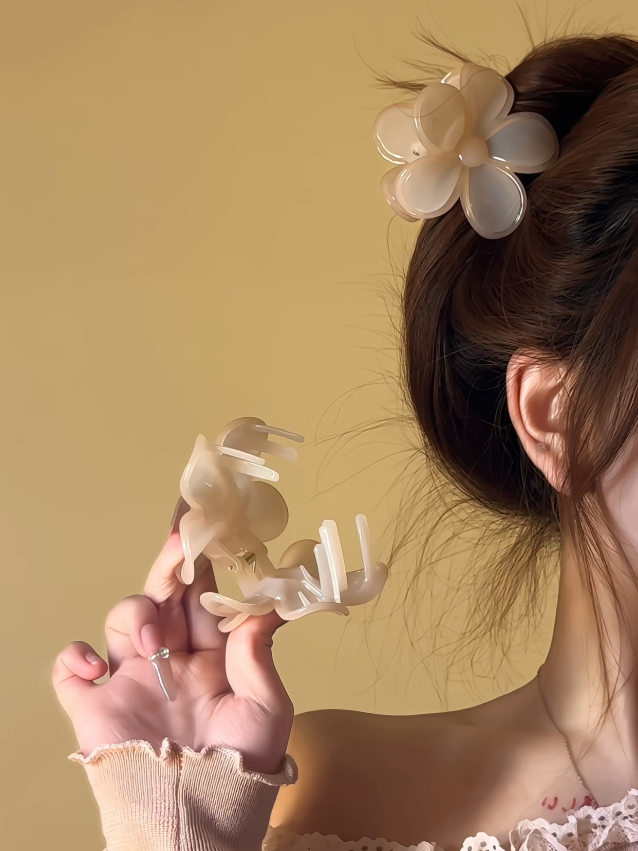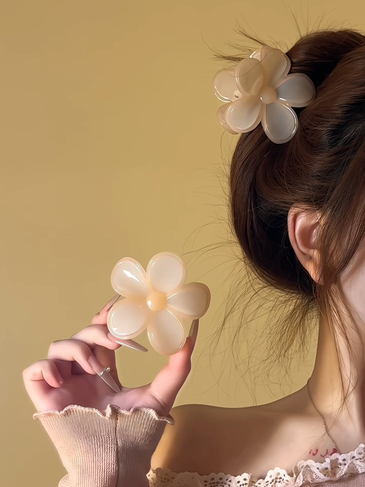 크림 젤리 콘트라스트 컬러 플라워 그랩 클립 2025 봄과 여름 헤어 랩 상어 클립 반 넥타이 헤어 클립 헤어 액세서리 헤드웨어스토어 가기