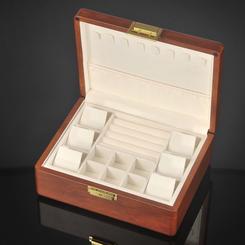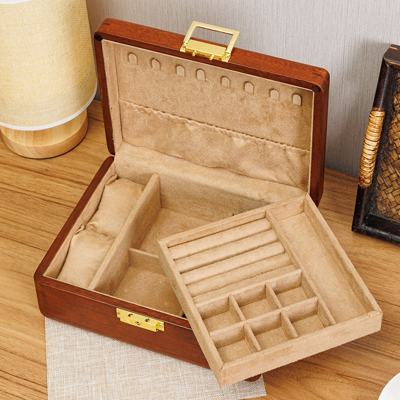 황금 티크 원목 보석 상자 가정용 절묘한 보관 상자 잠금 장치가있는 이중 보석 상자 결함 처리 제품