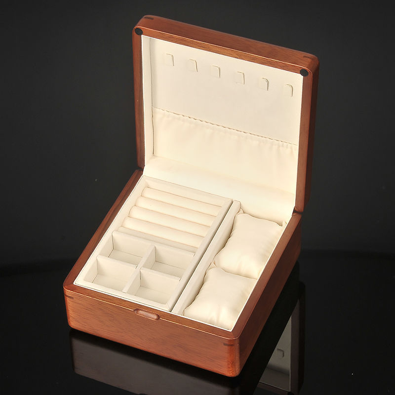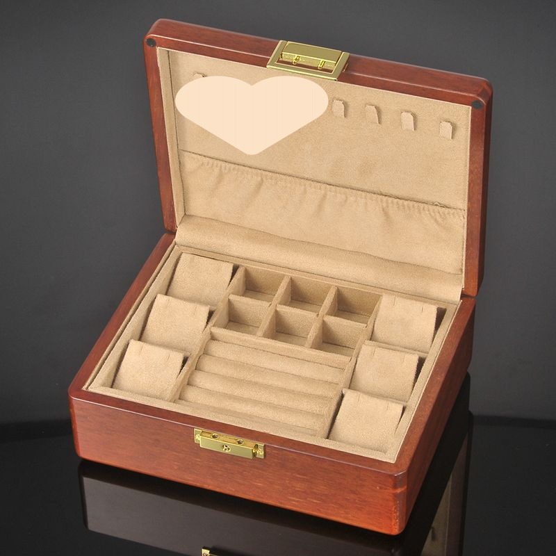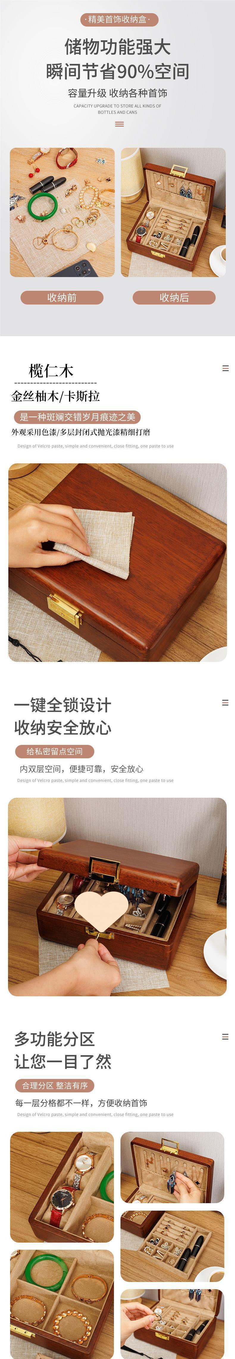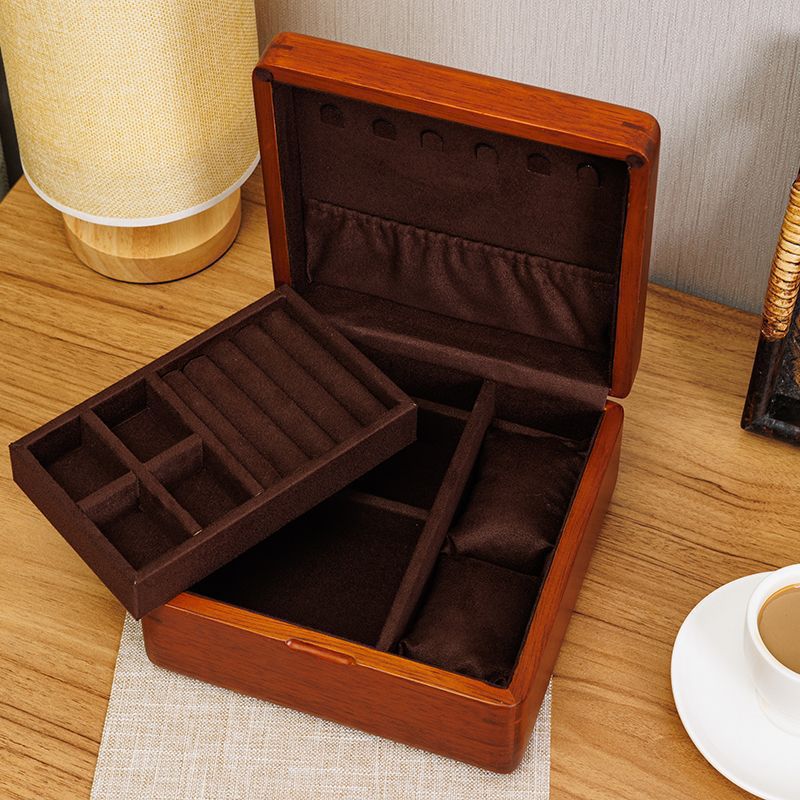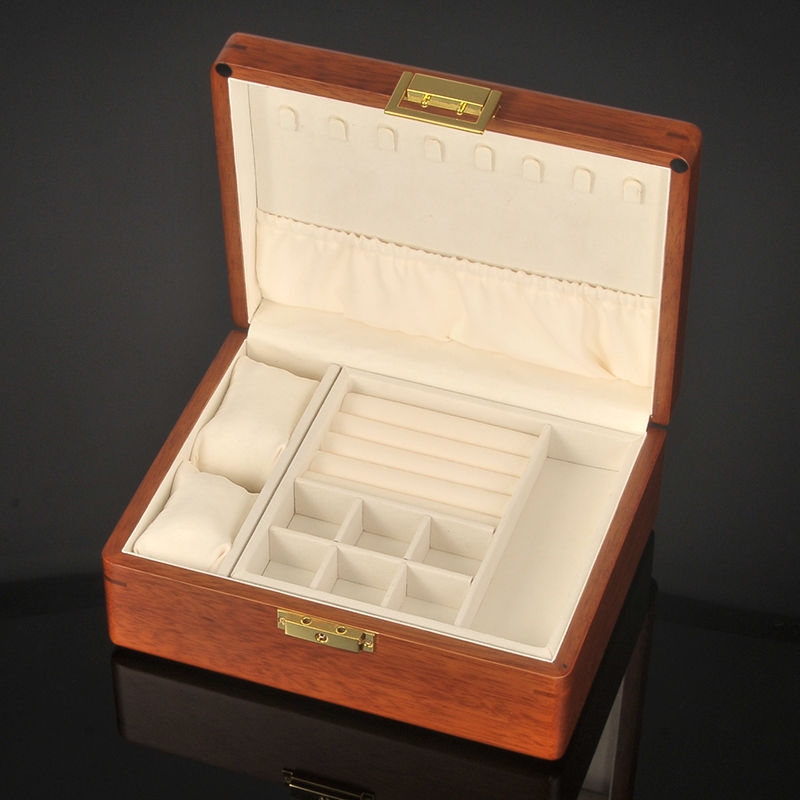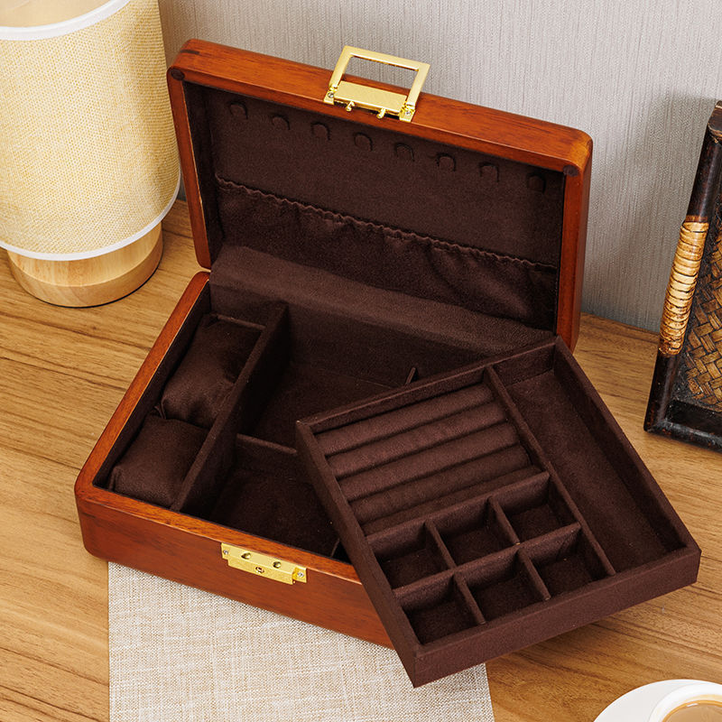 황금 티크 원목 보석 상자 가정용 절묘한 보관 상자 잠금 장치가있는 이중 보석 상자 결함 처리 제품스토어 가기