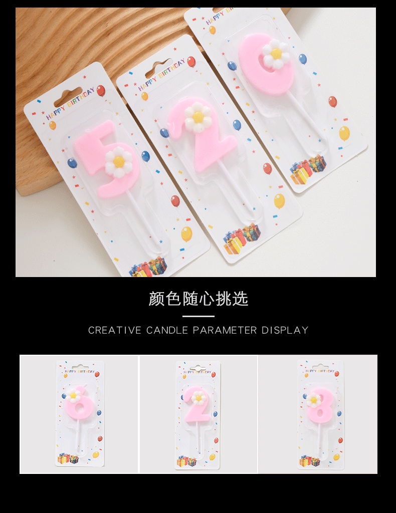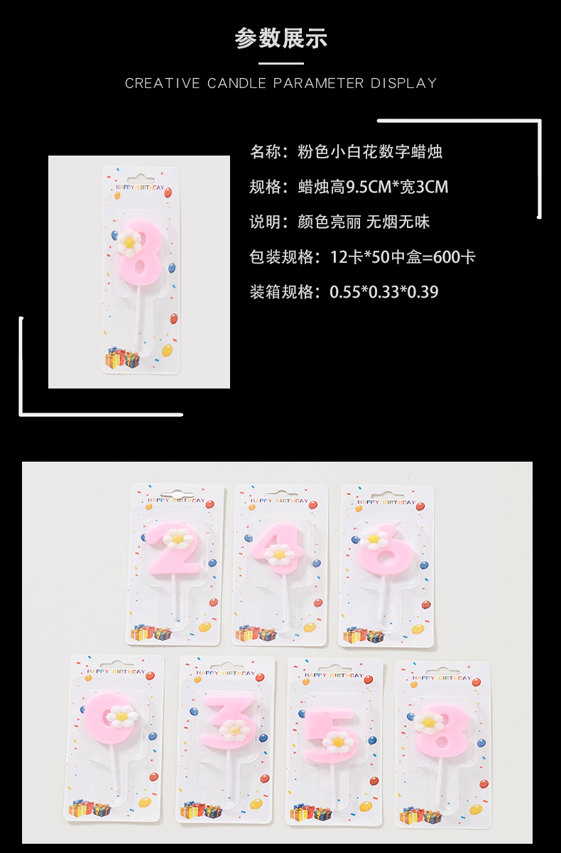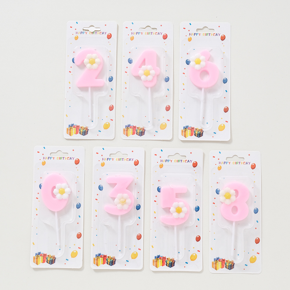 새로운 국경 아마존 핑크 작은 흰색 꽃 생일 디지털 케이크 촛불 소녀 어린이 베이킹 플러그인