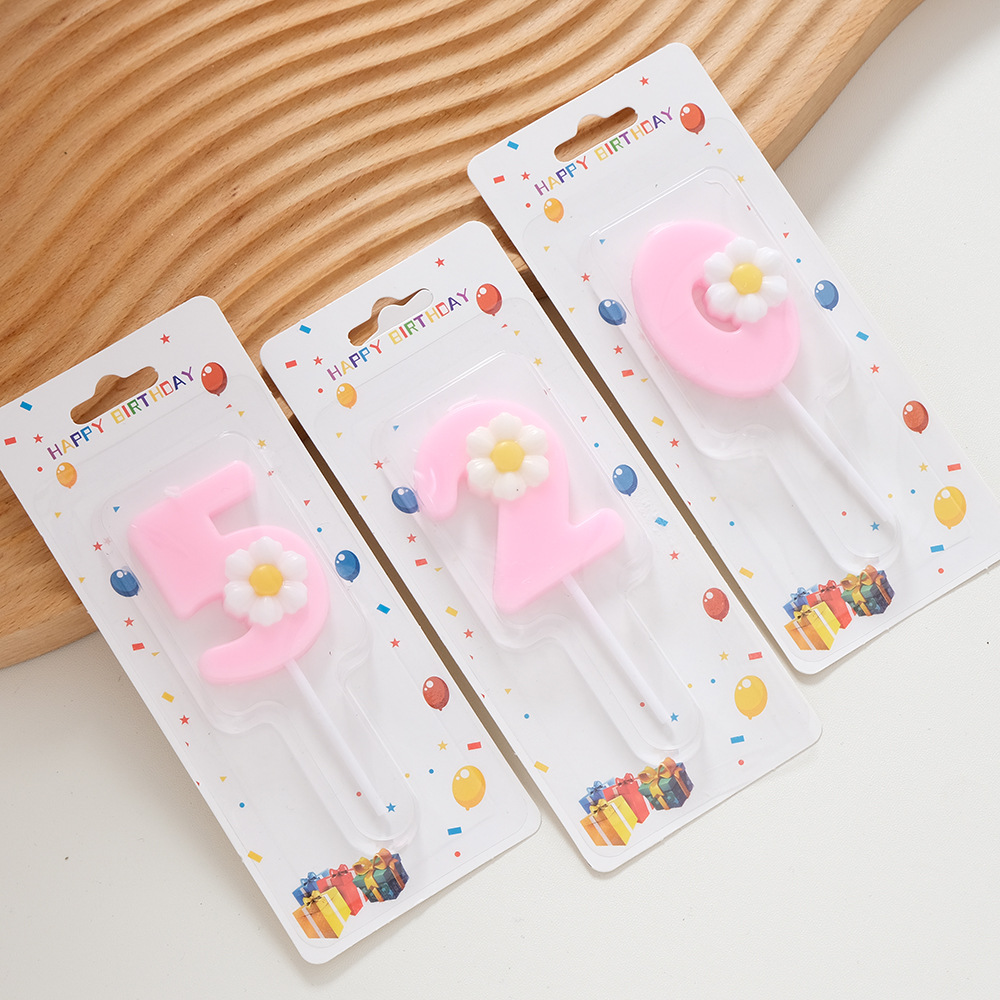 새로운 국경 아마존 핑크 작은 흰색 꽃 생일 디지털 케이크 촛불 소녀 어린이 베이킹 플러그인스토어 가기