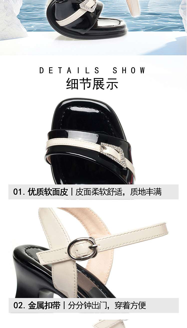 헤어 버클 하이힐 샌들 여성 패션 신발 여성 대비 색상 피로가 아닌 여름 여성 신발 스커트