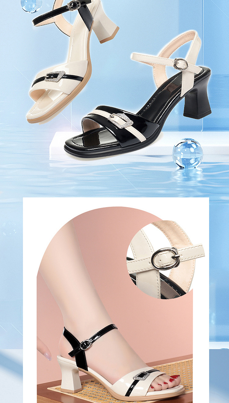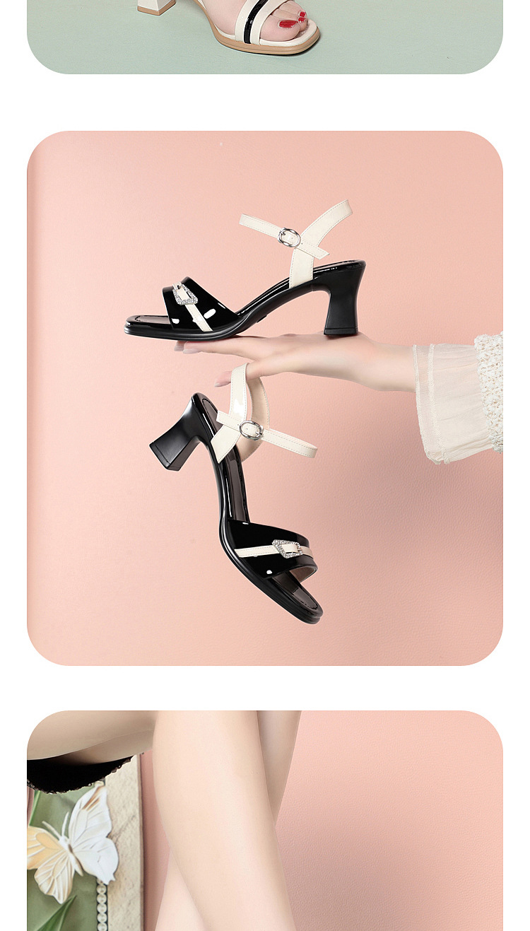 헤어 버클 하이힐 샌들 여성 패션 신발 여성 대비 색상 피로가 아닌 여름 여성 신발 스커트스토어 가기