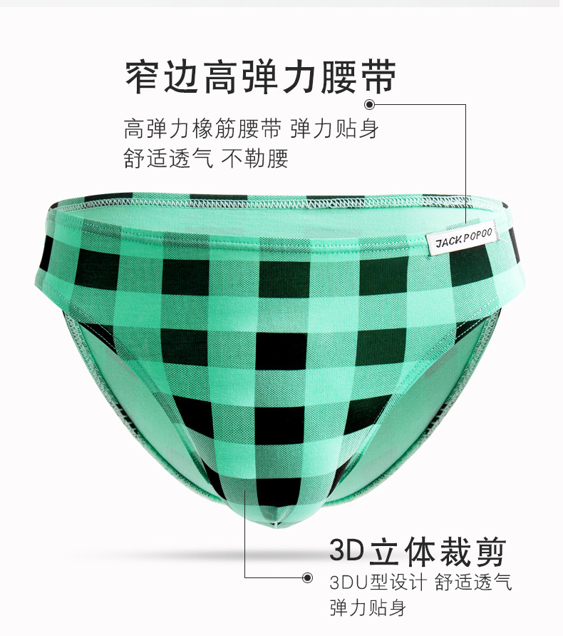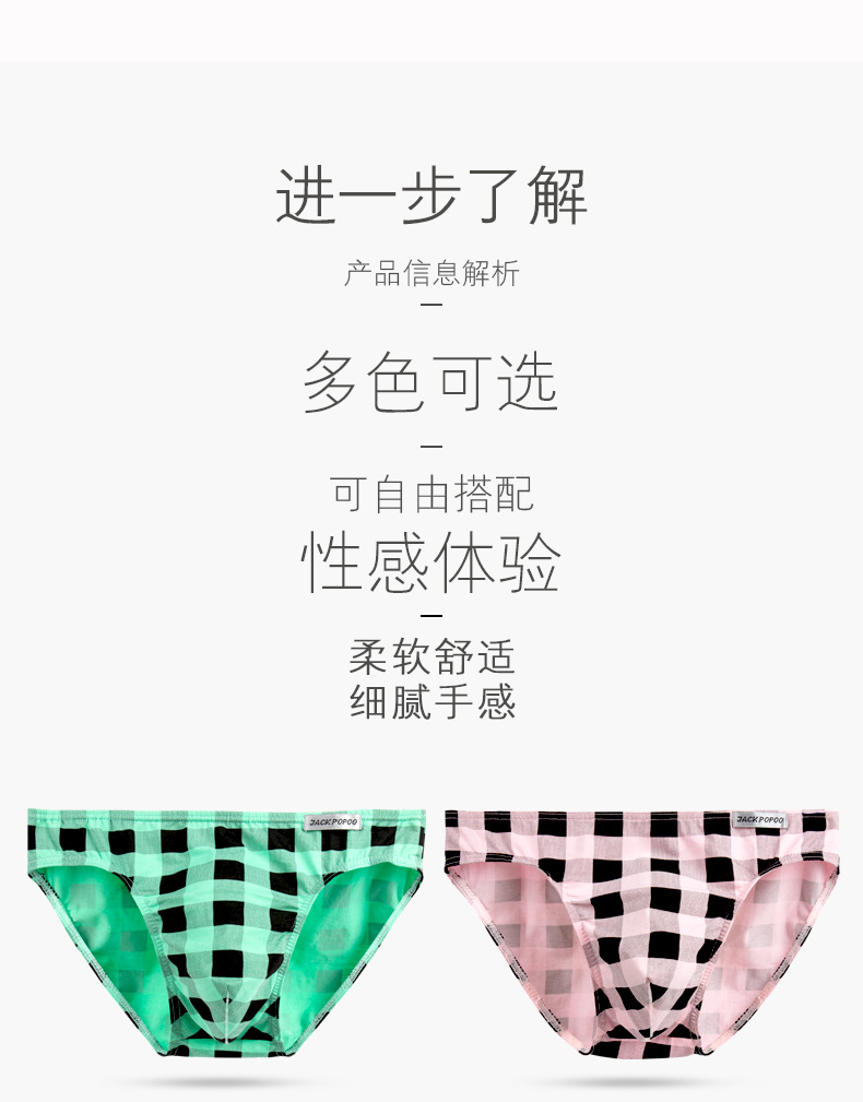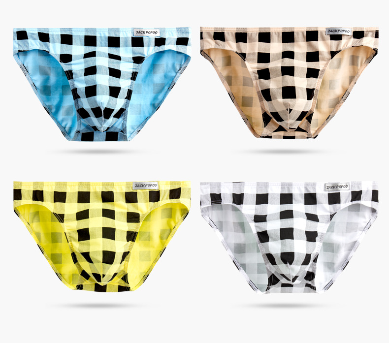 Dropshipping 남자 속옷 패션 격자 무늬 인쇄 팬티 낮은 허리 통기성 유행 스타일 데일리 캐주얼 삼각형